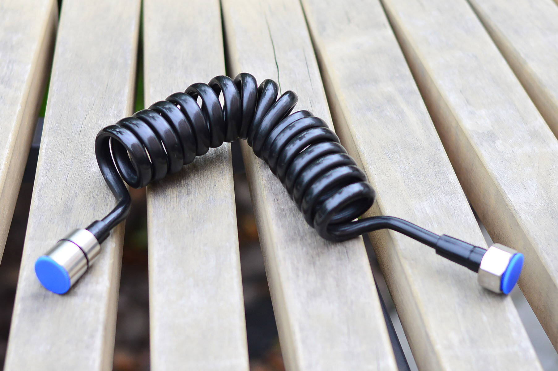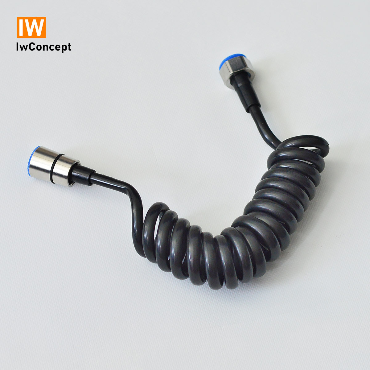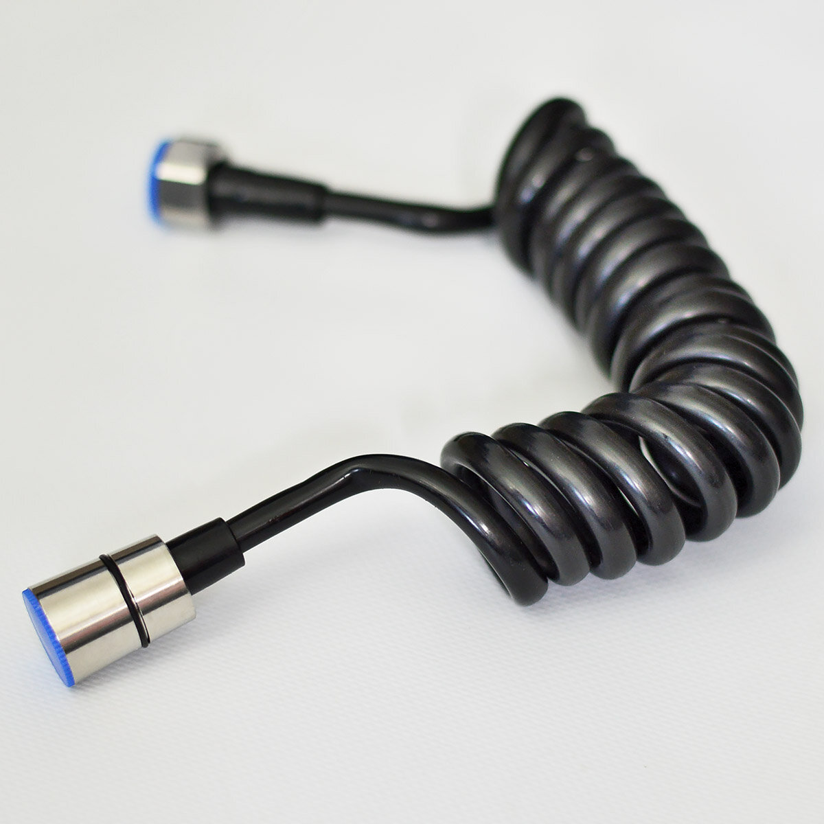 Шланг для гигиенического душа (бидетты) спиральной формы. Не занимает много места, после вытягивания возвращается в прежнее положение. Гайки подключения на 1/2 дюйма, изготовлены из нержавеющей стали. Присутствуют уплотняющие прокладки.