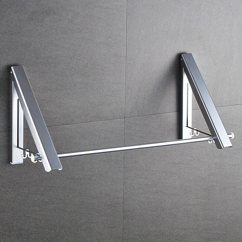 Складна вішалка на стіну з алюмінію. Займає мало місця, у складеному вигляді не помітна. Легко та швидко розкладається, витримує до 30 кг навантаження.