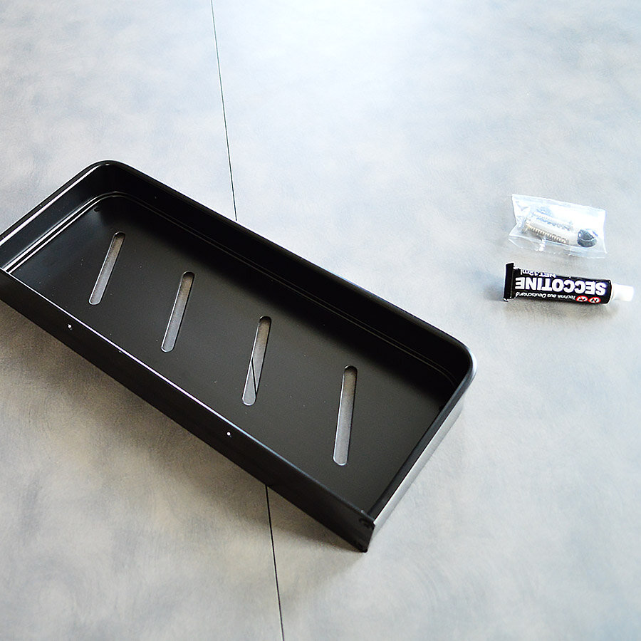 Полка для ванної виготовлена з алюмінію, стійка до впливу вологи, не іржавіє. Полка має сучасний дизайн (модерн, лофт), гармонійно поєднується з більшістю дизайнерських рішень при облаштуванні ванної кімнати. Покриття - надміцний грунт + чорна фарба.