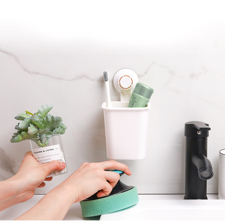 Стакан для зубных щеток и паст для крепления на стену. Изготовлен из пластика, внизу есть отверстия для стекания воды. Смонтированный на стену стакан можно снять и помыть.