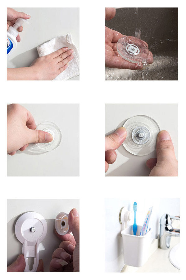 При затягивании крепежного винта под присоской создает вакуум, который и удерживает присоску на стене. Таки образом изделие можно прикрепить к стеклу, зеркалу или глянцевой плитке. Для крепления стакана к другим поверхностям необходимо использовать специальный клей (не идет в комплекте.)