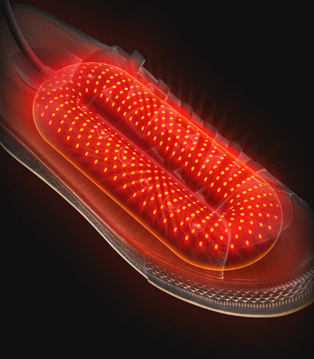 На поверхні є 1532 дрібнопористі отвори для випромінювання тепла. Вони забезпечують циркуляцію гарячого повітря у замкнутому просторі, рівномірно висушуючи взуття від вологи.
