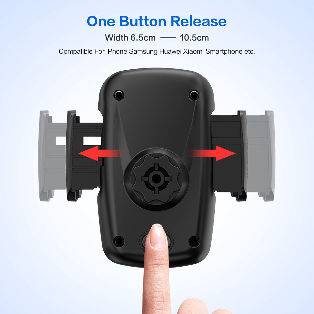 Вставте телефон та натисніть на бічні затискачі. Щоб вийняти телефон, натисніть кнопку ззаду внизу, механізм сам відкриє затискачі. Усі частини контакту тримача з телефоном покриті гумовим шаром.