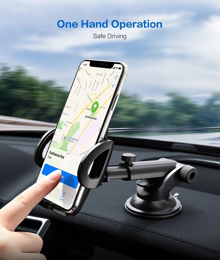 | Особенности | Фиксация вакуумной присоской, резиновые накладки, смена угла, регулировка длины автоматический фиксатор телефона |