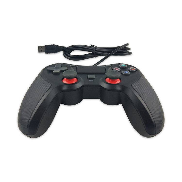 Провідний контролер геймпада для PS4 або PC c функцією вібрації, без гіроскопа, без динаміка, сенсорна панель в центрі ручки не має сенсорної функції.