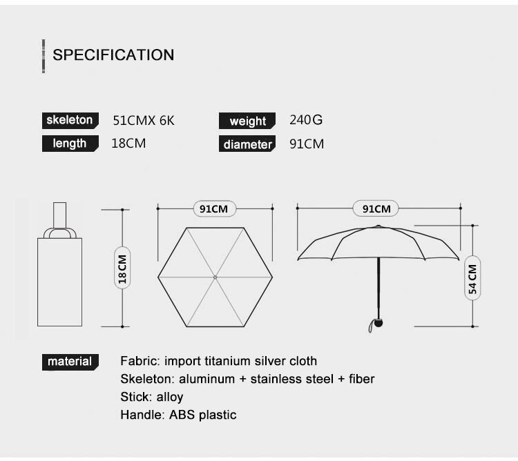 Облегченный стильный женский зонт от дождя и солнца. Простой механизм раскрывания, основная конструкция из алюминия. Ткань зонта имеет отражающее титановое покрытие NANO-TI.