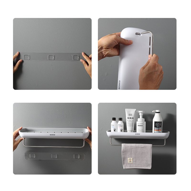 Поличку просто встановити без інструментів, не ушкоджуючи стіну завдяки спеціальному клейкому кріпленню, достатньо зафіксувати липучку на гладкій чистій поверхні.