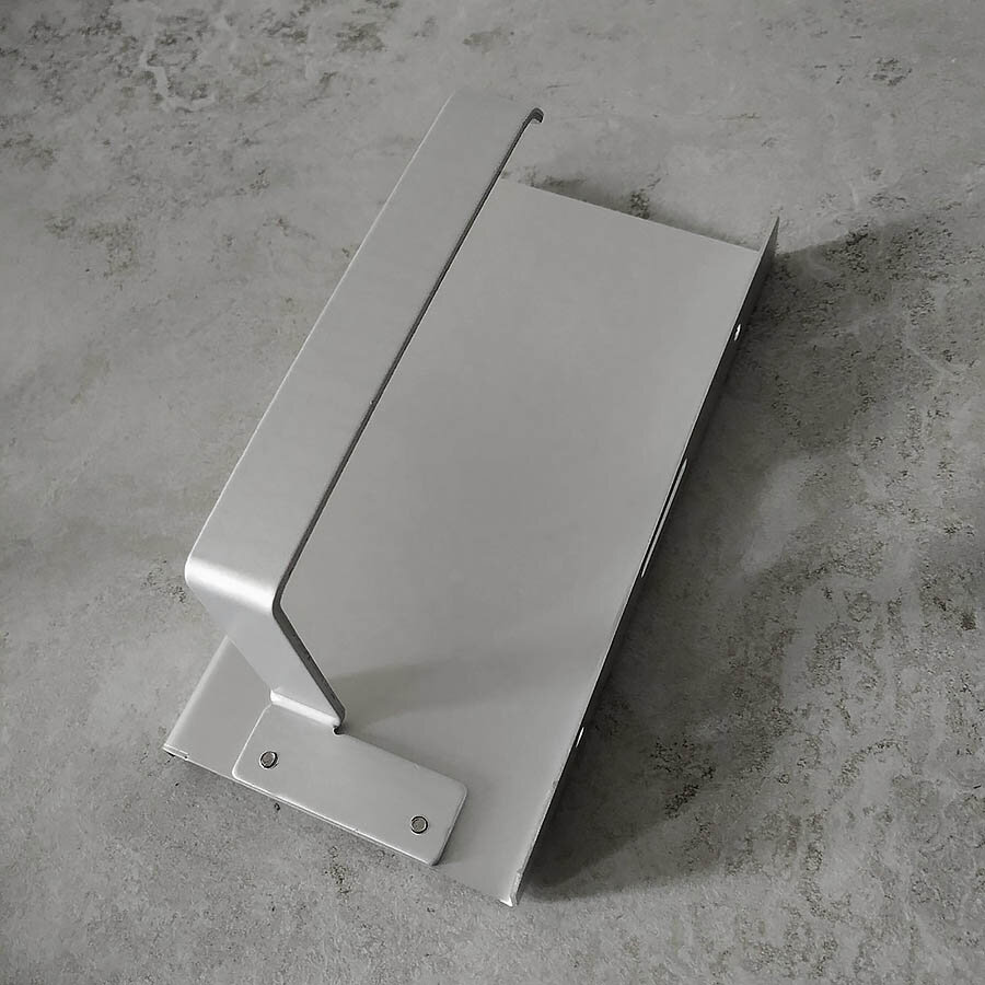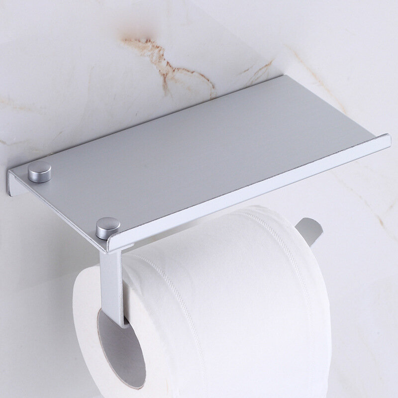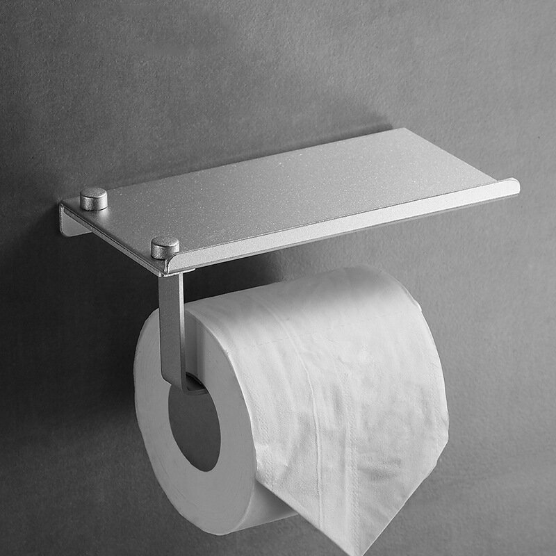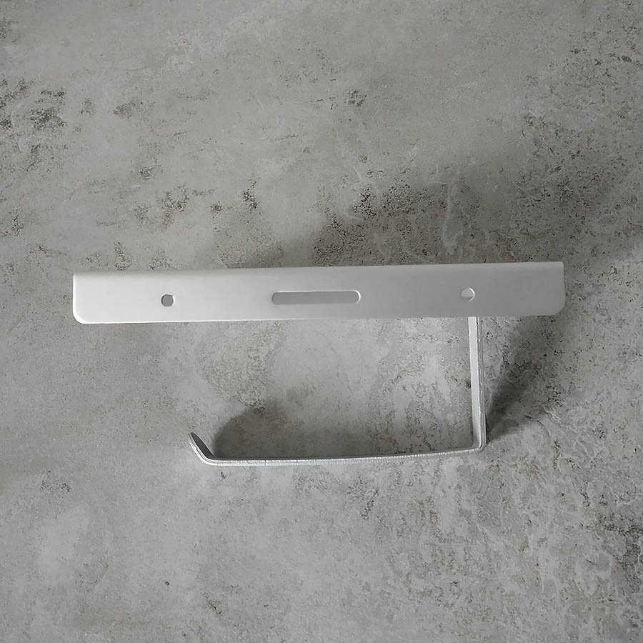 Тримач для туалетного паперу із алюмінію. Не боїться корозії. Надійне кріплення за допомогою шурупів чи клею (клей не йде в комплекті). Зверху є поличка.