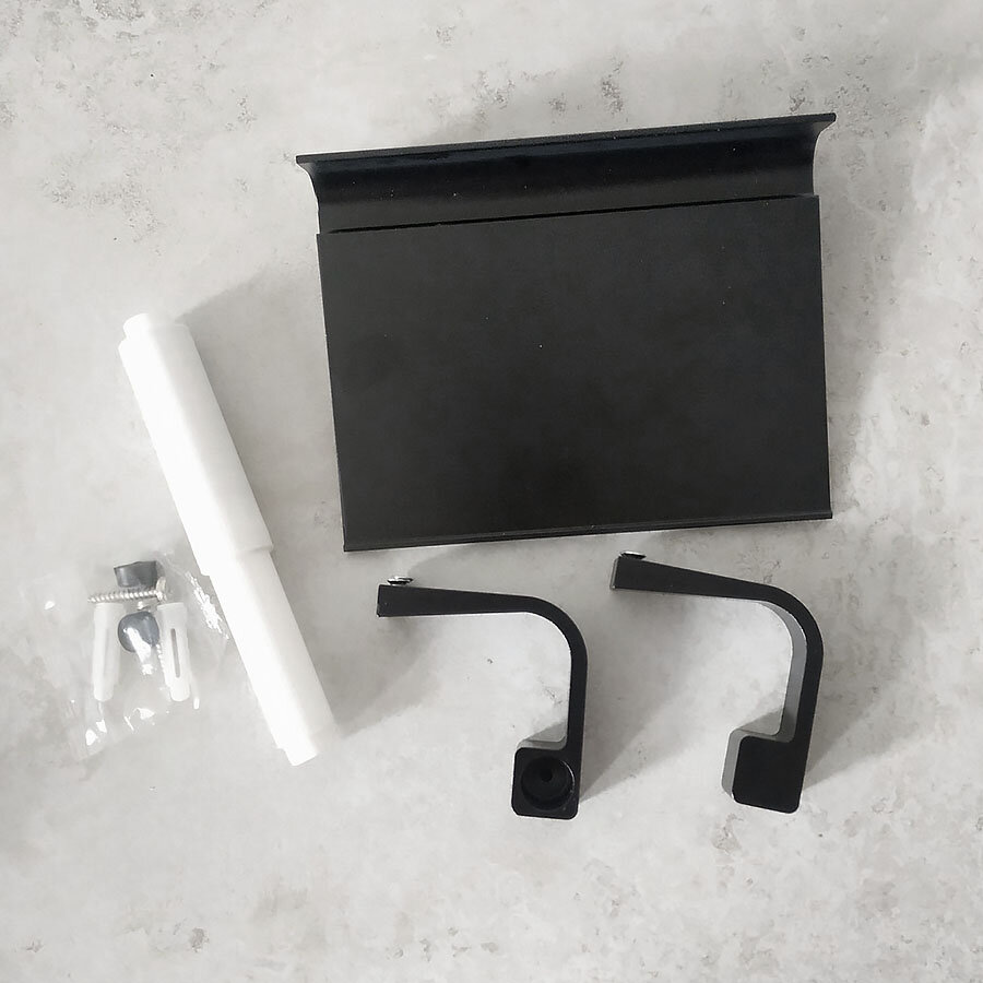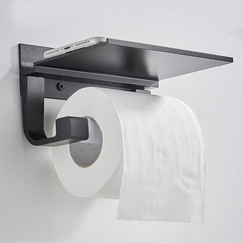 Тримач для туалетного паперу із алюмінію. Не боїться корозії. Надійне кріплення за допомогою шурупів (йдуть у комплекті). Зверху є поличка. Лита конструкція. Фіксація туалетного паперу із двох сторін.