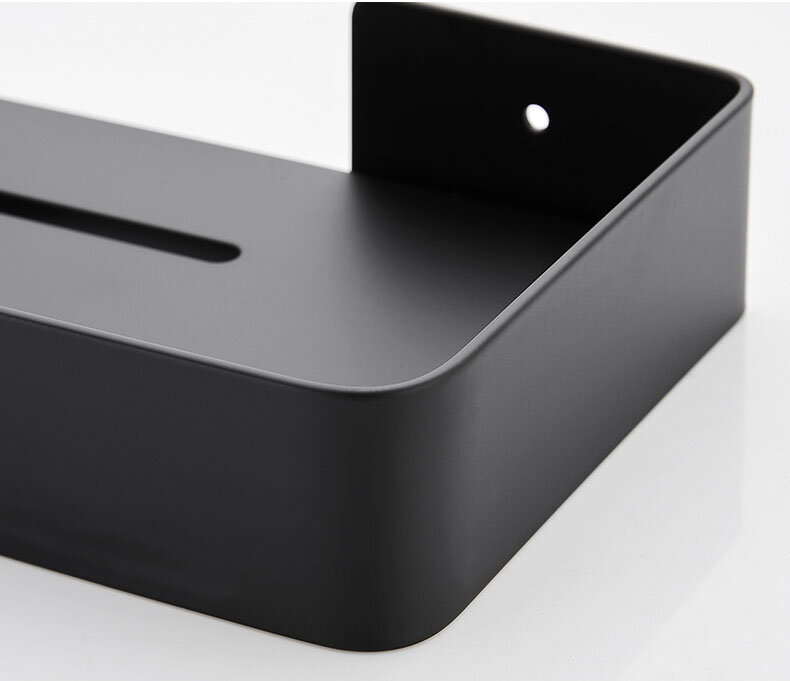 Полиця для ванної виготовлена з алюмінію, стійка до дії вологи, не іржавіє. Полиця має сучасний дизайн (модерн, лофт), що гармонійно поєднується з більшістю дизайнерських рішень при облаштуванні ванної кімнати. Покриття – міцний ґрунт + фарба (качество покраски среднее).