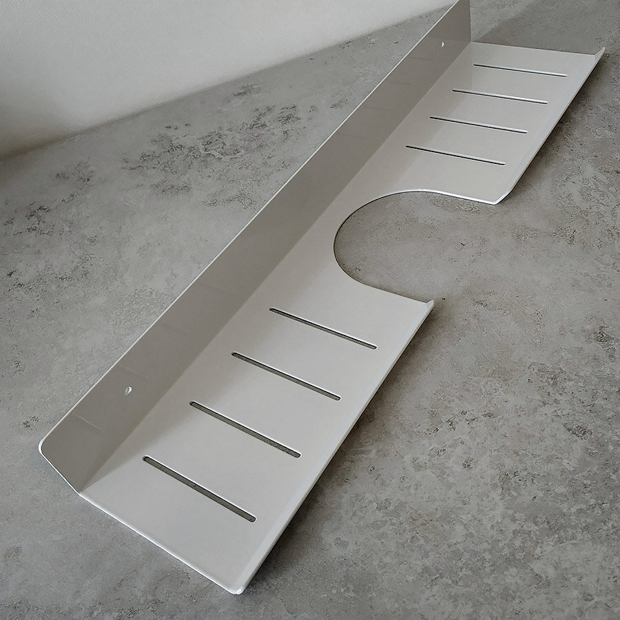 Полиця для ванної з алюмінію. Полиця виготовлена в стилі Лофт, що гармонійно поєднується з більшістю дизайнерських рішень при облаштуванні ванної кімнати. Дизайнерська лінійка полиць від IwConcept. Покриття - надміцний ґрунт + фарба.