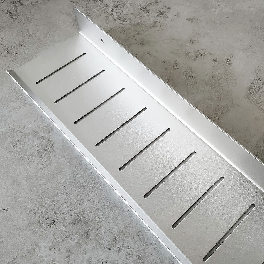 Полиця для ванної з алюмінію. Полиця виготовлена в стилі Лофт, що гармонійно поєднується з більшістю дизайнерських рішень при облаштуванні ванної кімнати. Дизайнерська лінійка полиць від IwConcept. Покриття - надміцний ґрунт + срібляста фарба.
