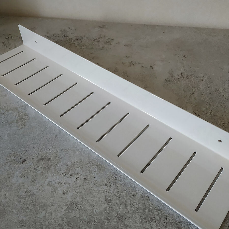 Полка для ванной из алюминия. Полка изготовлена в стиле Лофт, гармонично сочетается с большинством дизайнерских решений при обустройстве ванной комнаты. Дизайнерская линейка полок от IwConcept. Покрытие - прочный грунт + белая глянцевая краска.