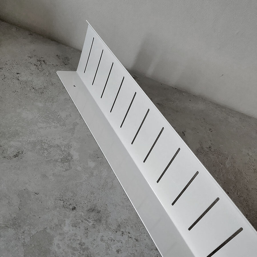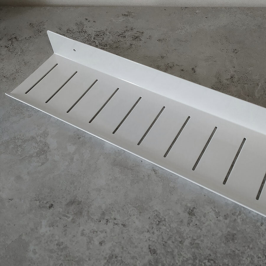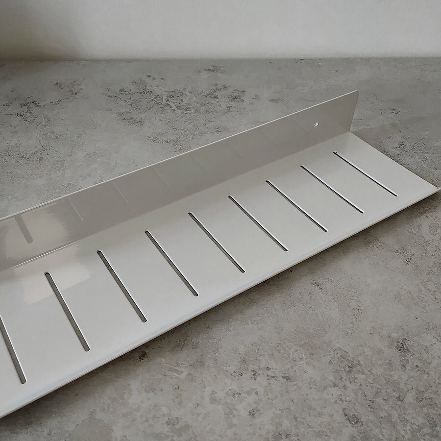 Полиця для ванної з алюмінію. Полиця виготовлена в стилі Лофт, що гармонійно поєднується з більшістю дизайнерських рішень при облаштуванні ванної кімнати. Дизайнерська лінійка полиць від IwConcept. Покриття - міцний ґрунт + біла глянсова фарба.