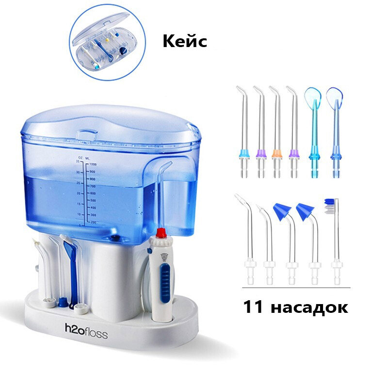Іригатор H2OFLOSS HF-7 Premium Version – пристрій для очищення ротової порожнини та носа, який можна використовувати для всіх членів сім'ї. На відміну від версії HF-7 має тихішу помпу, кришку футляр і збільшений комплект насадок.