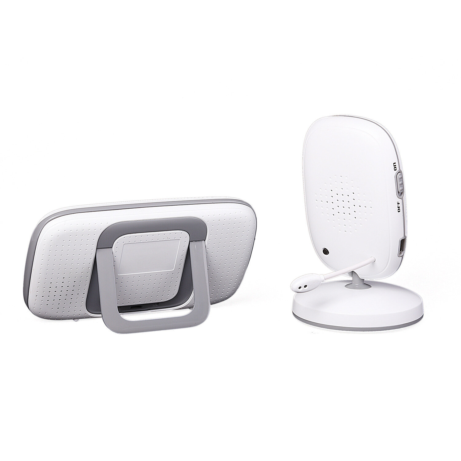 Пристрій складається з 2-х блоків - камери та монітора спостереження. Камера має невидиме нічне підсвічування та датчик температури. Монітор обладнано акумулятором. Завдяки вбудованому мікрофону та динаміку забезпечується двосторонній зв'язок – Ви зможете не тільки чути дитину, але й говорити з нею. Вбудований термометр виміряє температуру в приміщенні, де знаходиться малюк. Температура відображається на моніторі батьківського блоку.