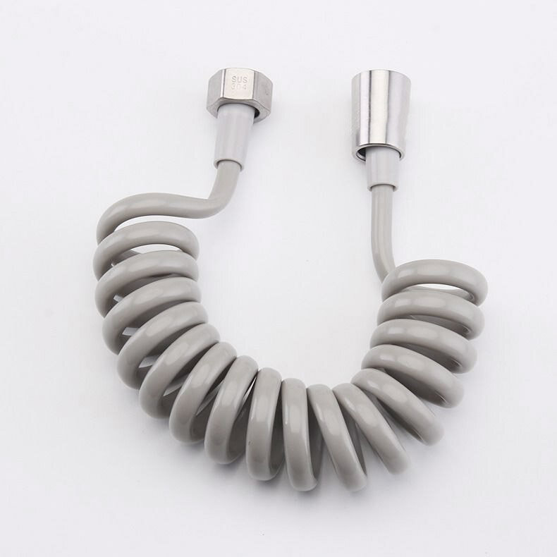 Шланг для гігієнічного душу (бідетти) спіральної форми. Не займає багато місця, після витягування повертається до попереднього положення. Гайки підключення на 1/2 дюйми, виготовлені з латуні. Є ущільнюючі прокладки.