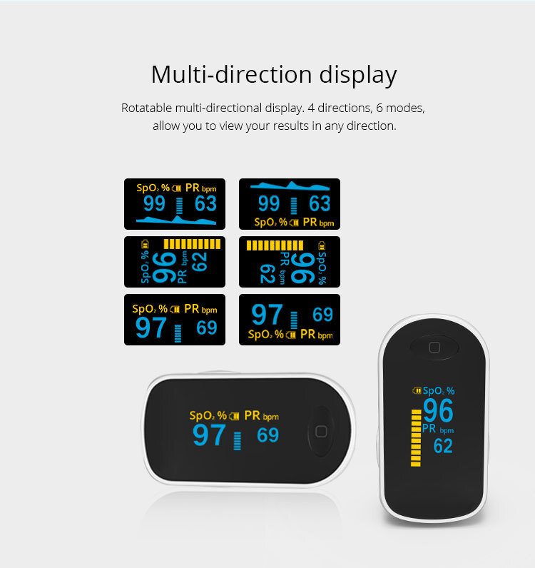| Особенности | Диапазон измерения: 30-99% Точность: от 70% до 99%±2% Диапазон измерения: 30-250 ударов в минуту Точность: 1% или 1 уд/мин |