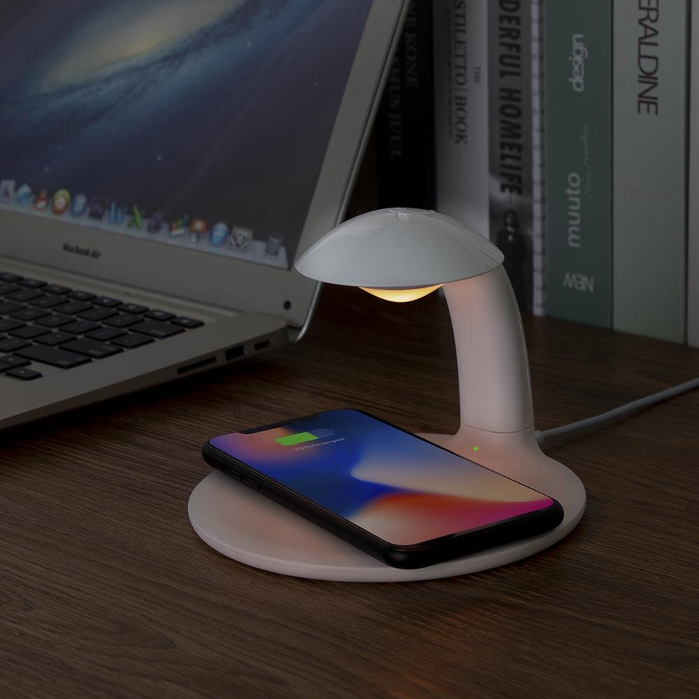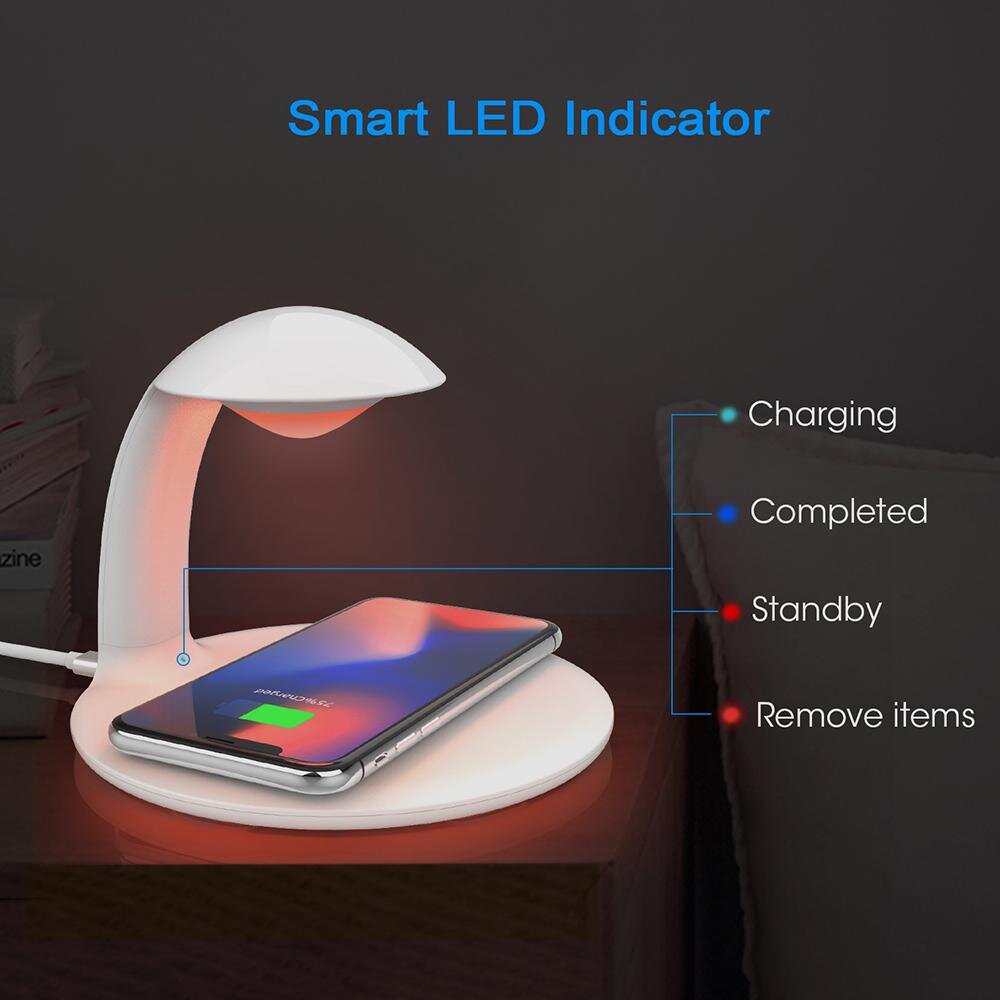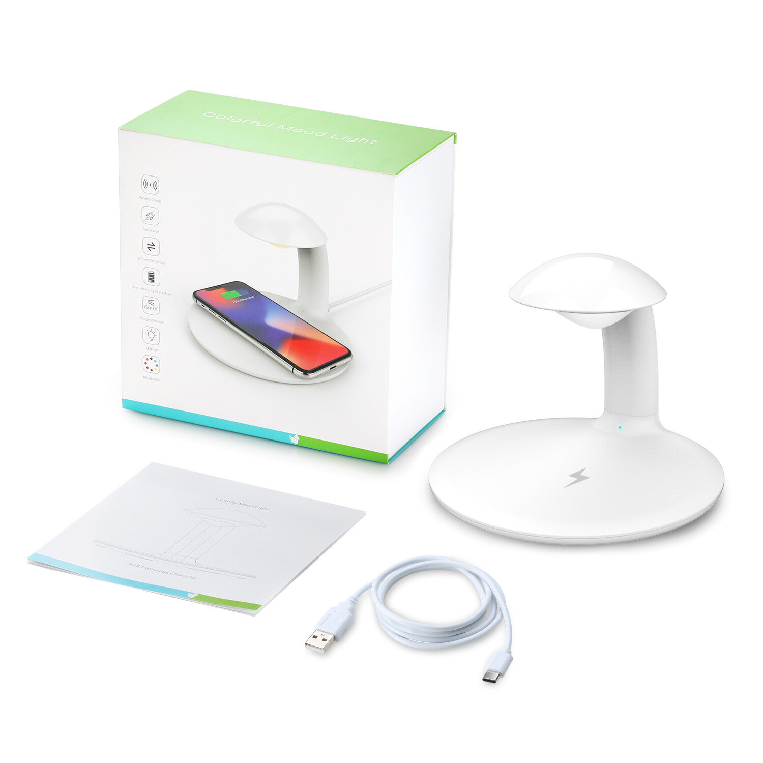 Це бездротова зарядка для мобільних телефонів зі світлодіодним лампою. Зарядний пристрій універсальний, підходить для більшості телефонів з функцією безконтактної зарядки. Функція швидкої зарядки.