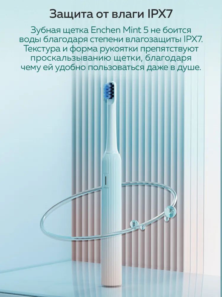 Enchen Mint 5 представляет собой электрическую зубную щетку, которая с легкостью очистит всю полость рта. Модель обладает степенью защиты IPX7, благодаря чему ей не страшны воздействия воды и влаги.