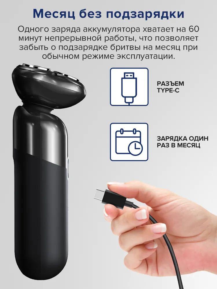 - Тип гоління: сухе
