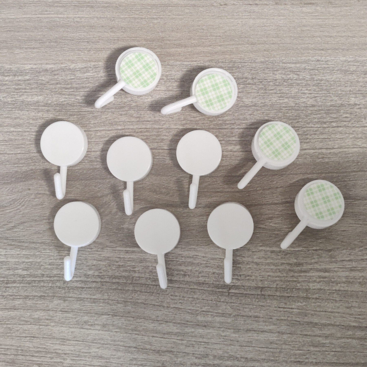 Гачки із пластику, клеяться до стіни на двосторонній скотч (у комплекті). Невеликі, стильні. Ціна вказана за 10 гачків.