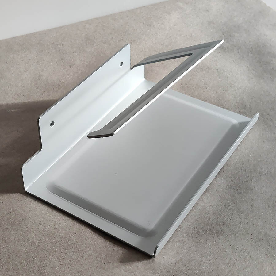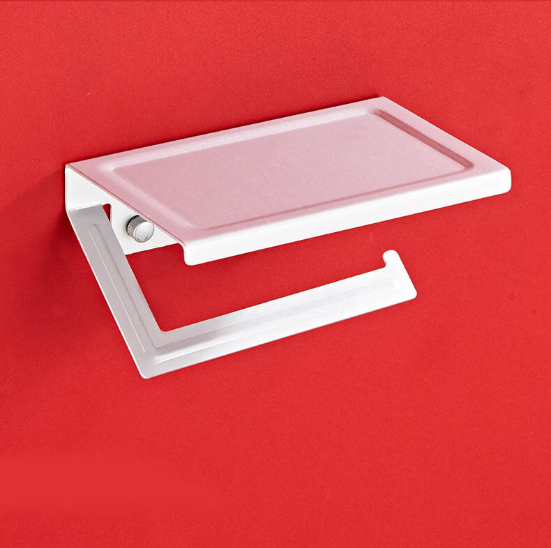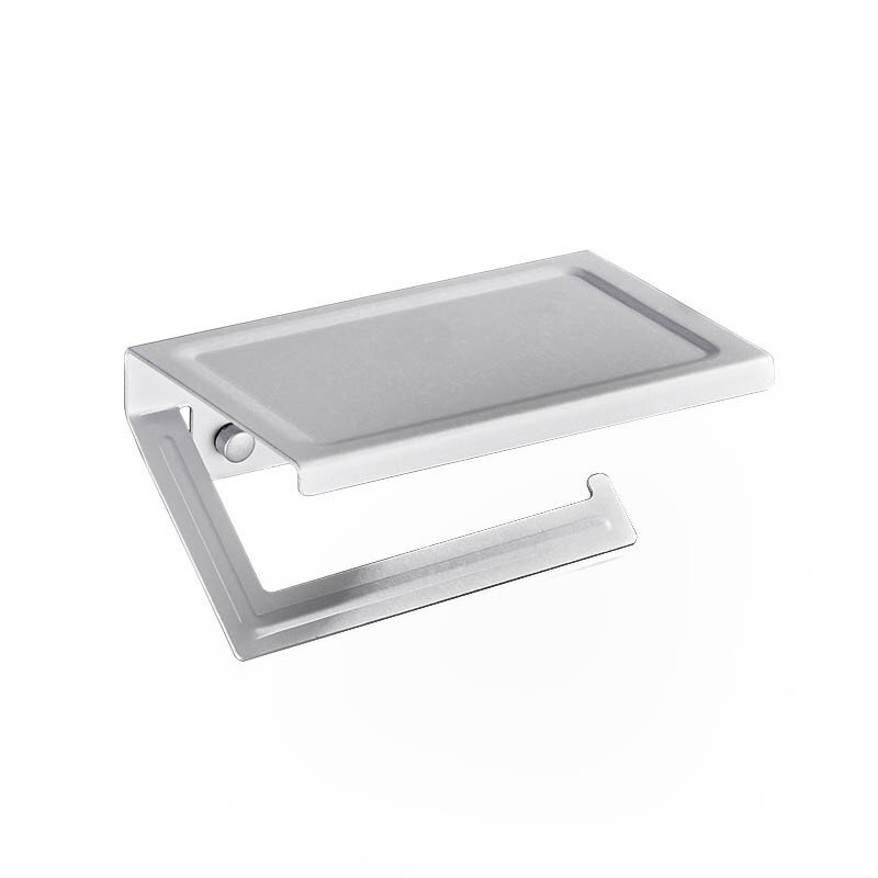 Тримач для туалетного паперу із алюмінію. Не боїться корозії. Надійне кріплення за допомогою шурупів чи клею (клей не йде в комплекті). Зверху є поличка.