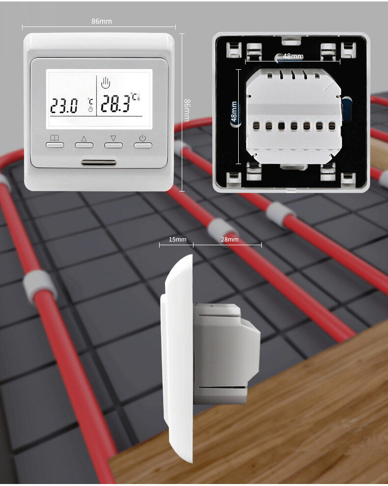 Терморегулятор для теплої підлоги використовується для керування електричною теплою підлогою (мат, кабель, інфрачервона плівка) та іншими системами електроопалення. Регулювання температури через меню.