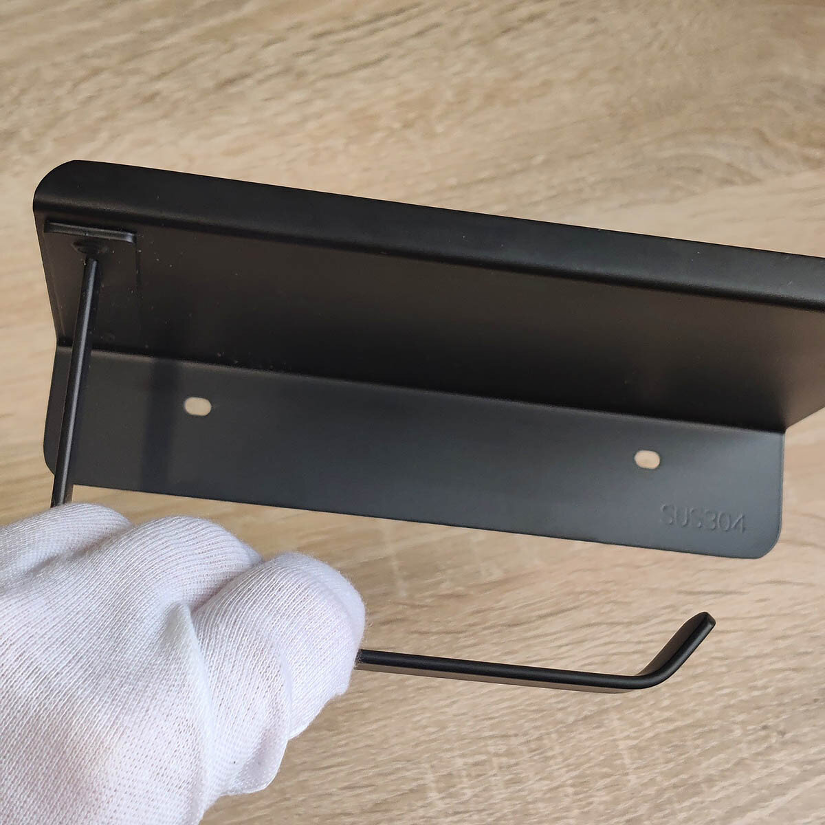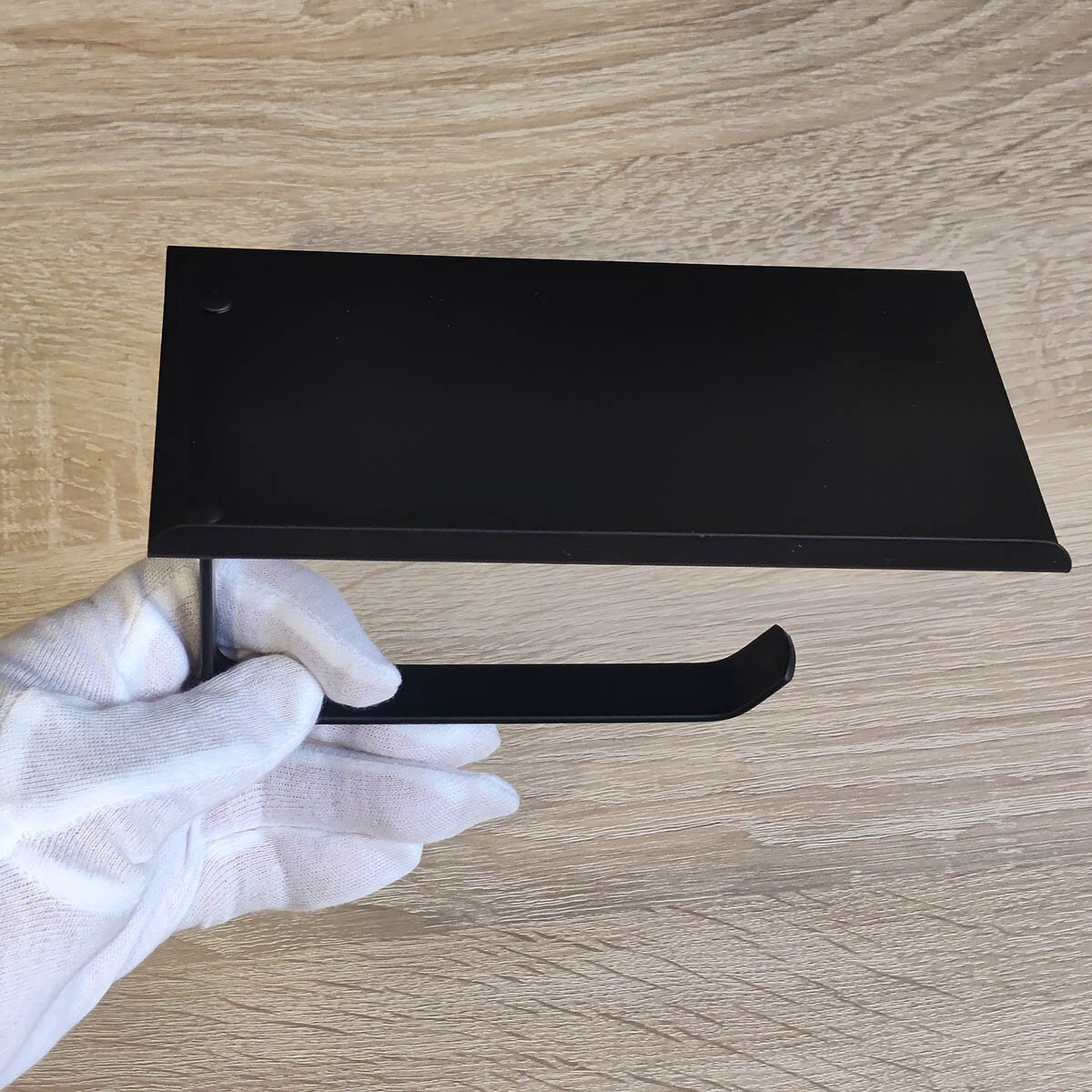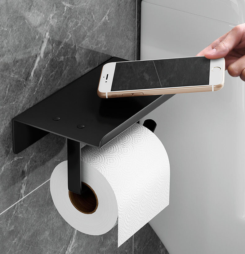 Тримач для туалетного паперу із нержавіючої сталі.  Не боїться корозії. Надійне кріплення за допомогою шурупів або клейких пластин (ідуть у комплекті). Зверху є поличка. Фарба - напівматова.