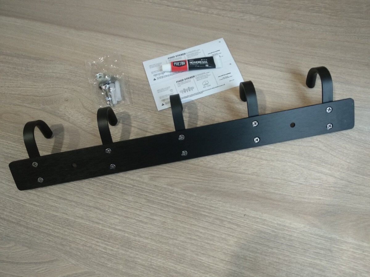 Вішалка із алюмінію. Виготовлена з товстого матеріалу, не гнеться. Великі гачки. Кріпиться шурупами.