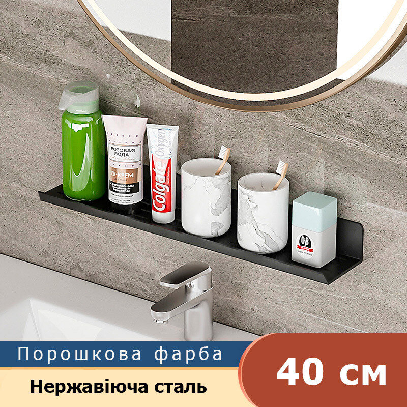 Полка для ванної з нержавіючої сталі. Полка виготовлена в стилі Лофт, гармонійно поєднується з більшістю дизайнерських рішень при облаштуванні ванної кімнати. Покриття - порошкова фарба, якість покриття середня.