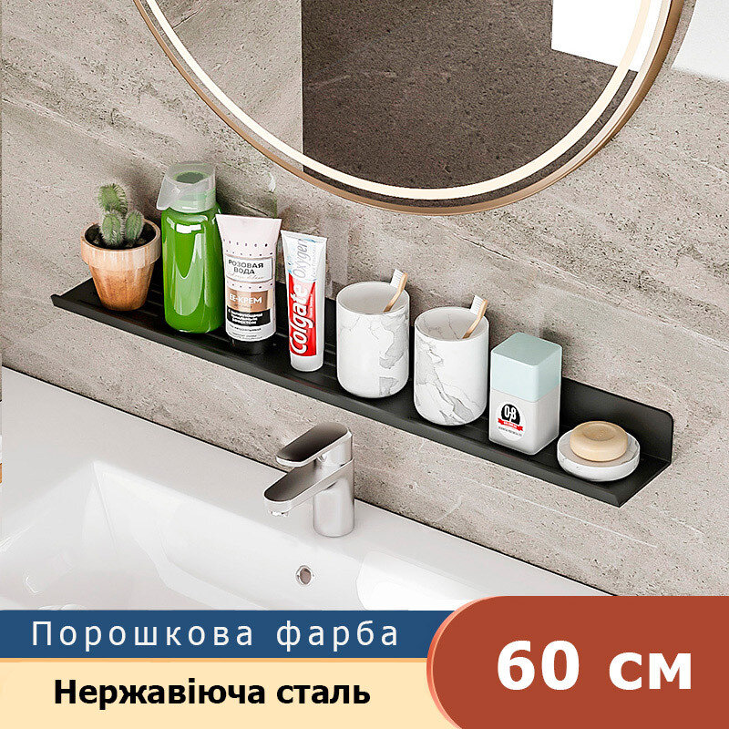 Полка для ванної з нержавіючої сталі. Полка виготовлена в стилі Лофт, гармонійно поєднується з більшістю дизайнерських рішень при облаштуванні ванної кімнати. Покриття - порошкова фарба, якість покриття середня.