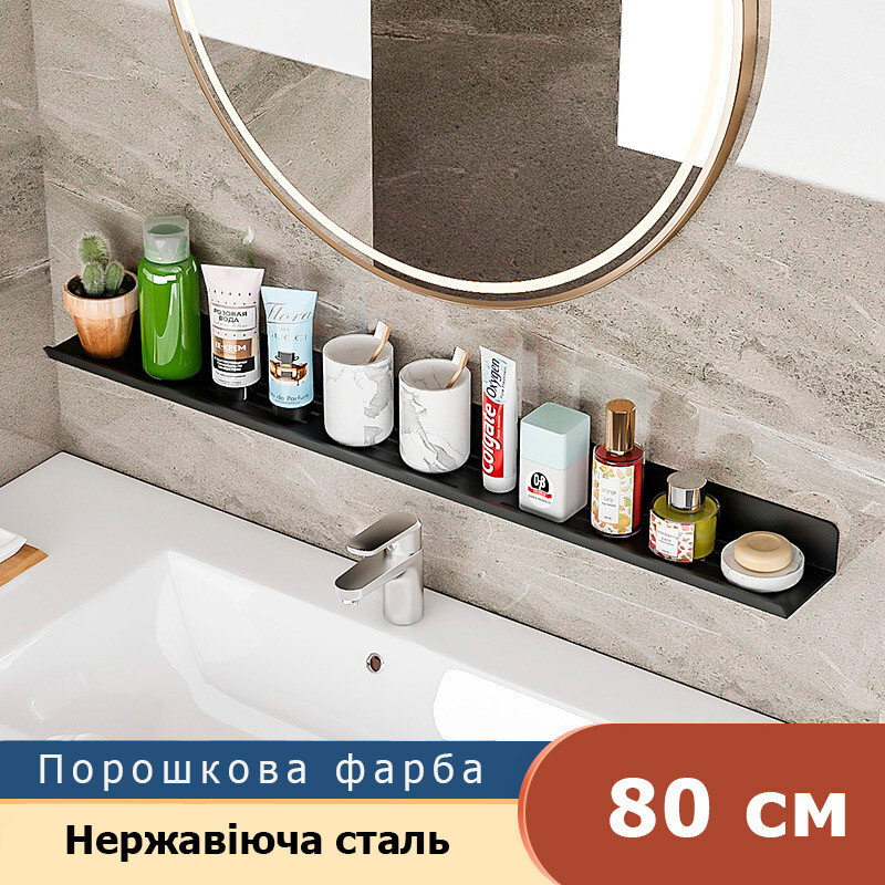 Полка для ванної з нержавіючої сталі. Полка виготовлена в стилі Лофт, гармонійно поєднується з більшістю дизайнерських рішень при облаштуванні ванної кімнати. Покриття - порошкова фарба, якість покриття середня.