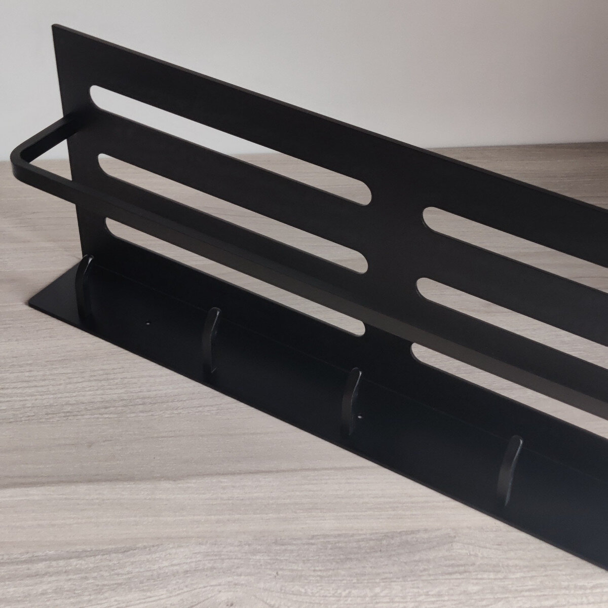 Ця універсальна полка - не просто місце для зберігання рушників. Це багатофункціональне диво, яке підходить для різних предметів! Завдяки універсальній конструкції полиці ви можете зберігати все, що завгодно, від пляшок із шампунем до банних халатів. Вбудований тримач для рушників гарантує, що ваші рушники завжди будуть під рукою, а п'ять гачків ідеально підходять для підвішування мочалок та багато іншого.