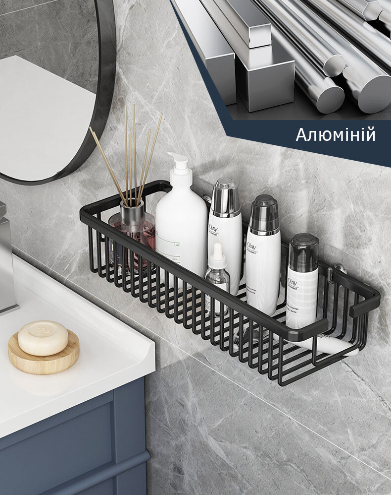 Полиця для ванної виготовлена з алюмінію, стійка до дії вологи, не іржавіє. Полиця має сучасний дизайн, що гармонійно поєднується з більшістю дизайнерських рішень при облаштуванні ванної кімнати. Покриття – міцний ґрунт + фарба.