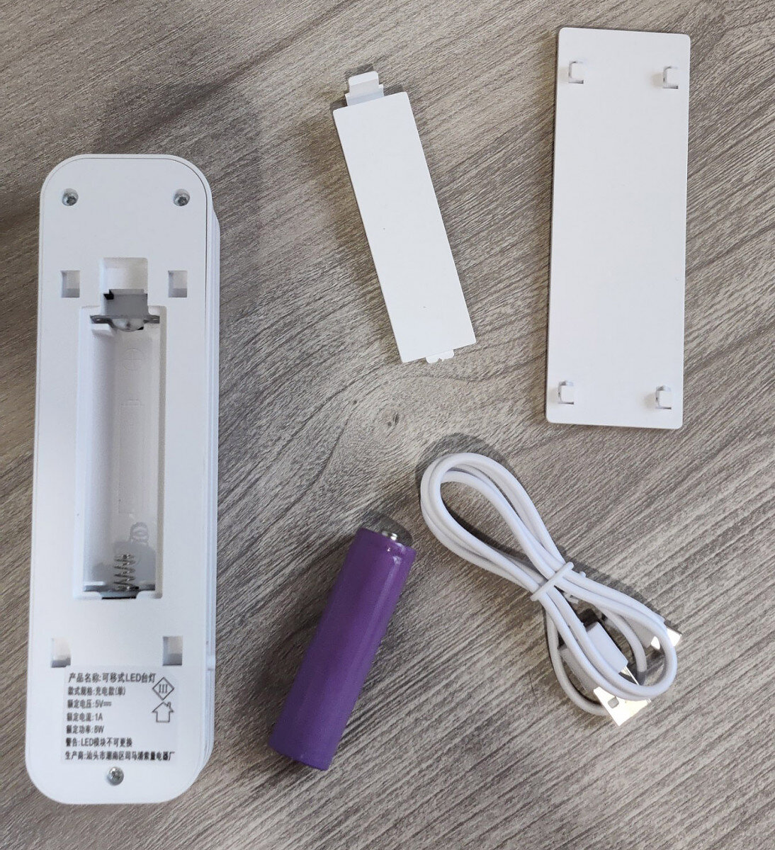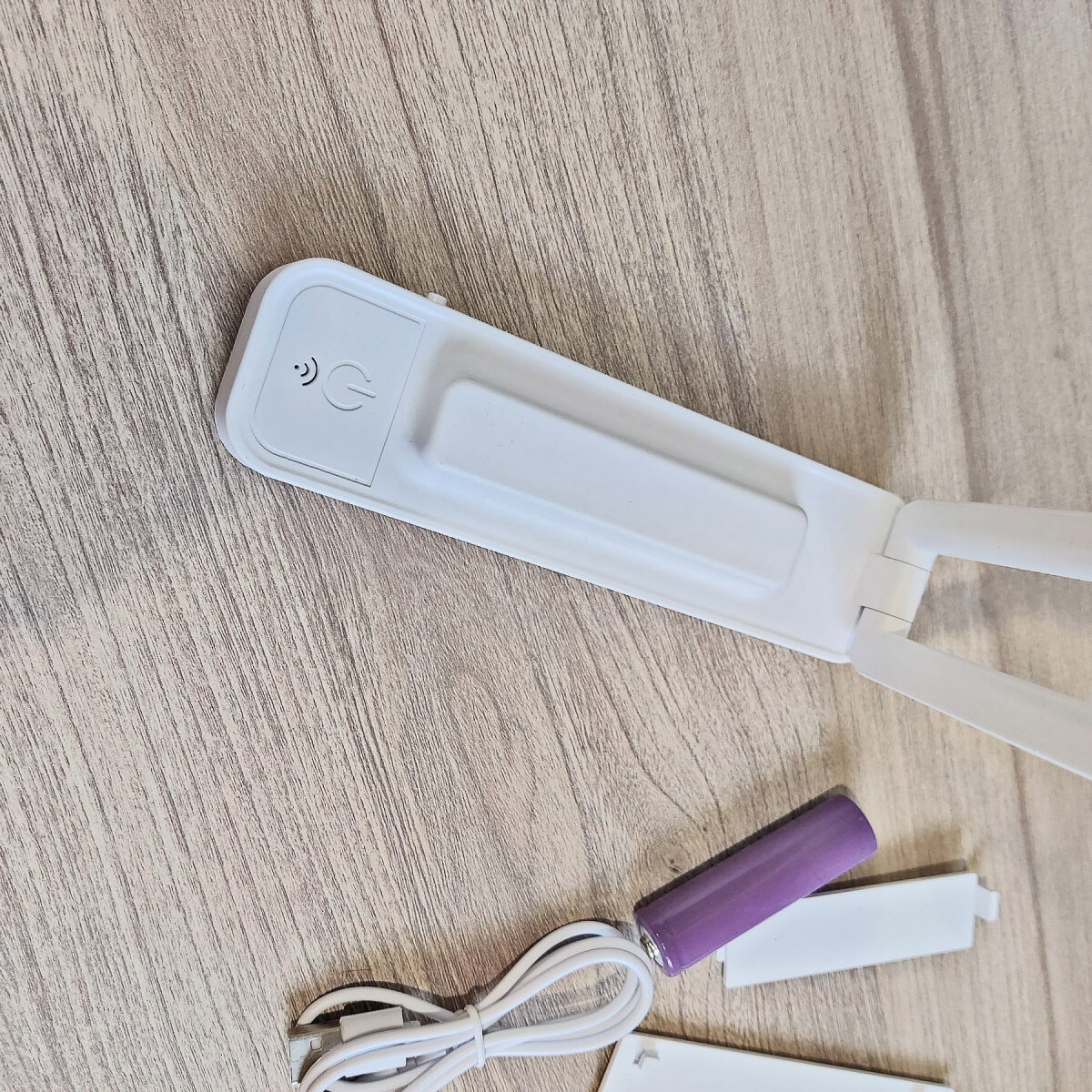Складна настільна лампа з вбудованим джерелом світла та акумулятором. Акумулятор легко знімний – можна просто замінити.