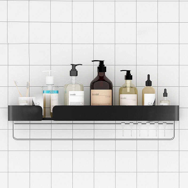 Полка для ванної виготовлена з алюмінію, стійка до впливу вологи, не іржавіє. Полка має сучасний дизайн (модерн, лофт), гармонійно поєднується з більшістю дизайнерських рішень при облаштуванні ванної кімнати. Покриття - напівматова чорна фарба.