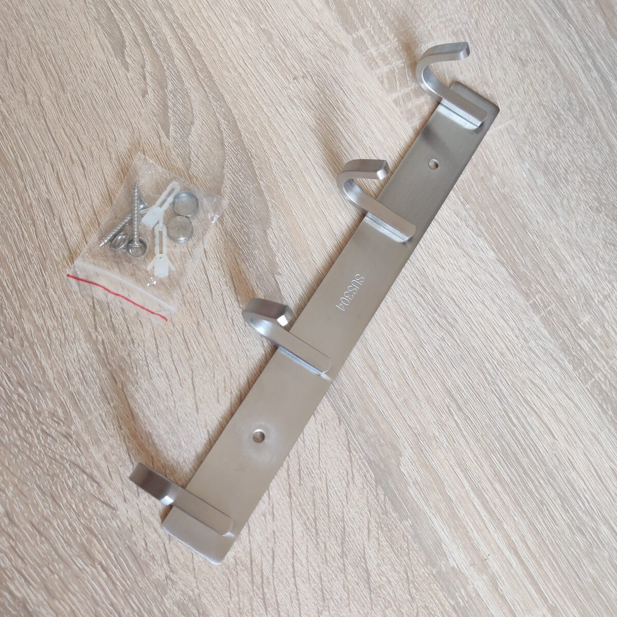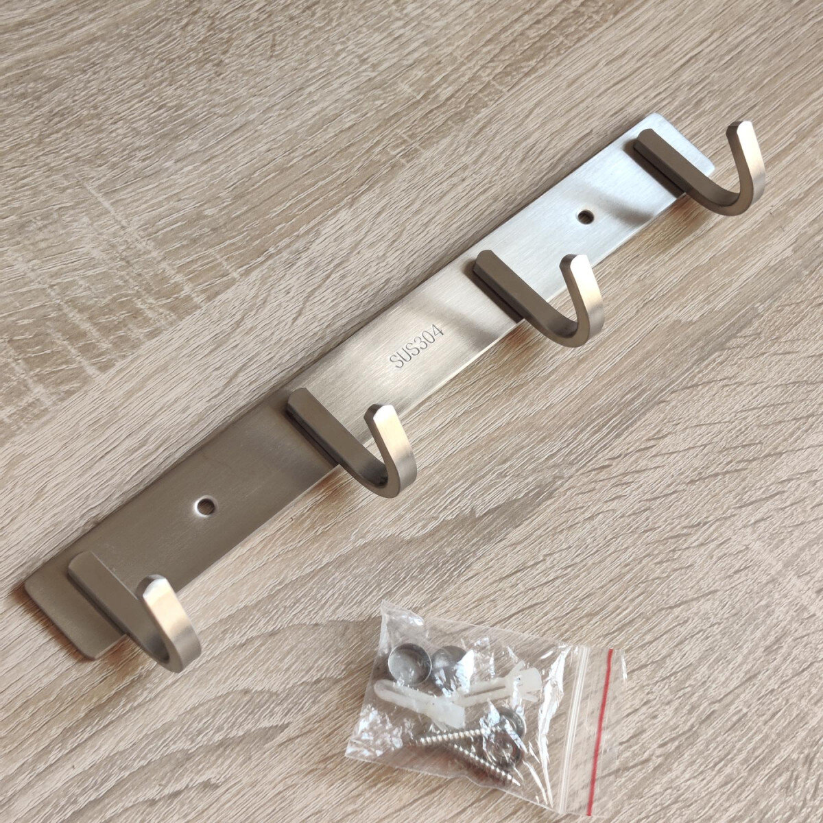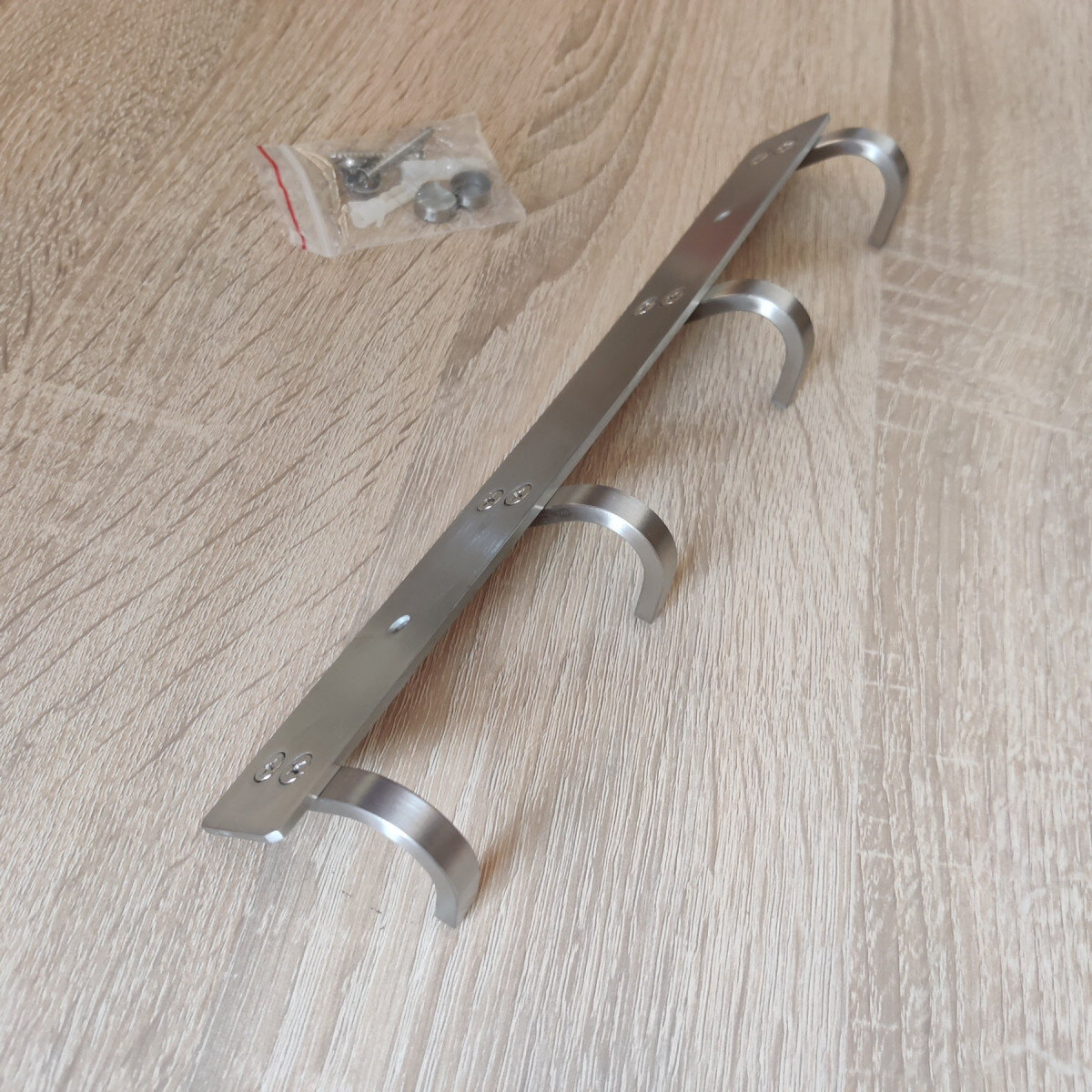 Вішалка із нержавіючої сталі. Виготовлена з товстого матеріалу, не гнеться. Матова поверхня. Кріпиться шурупами.