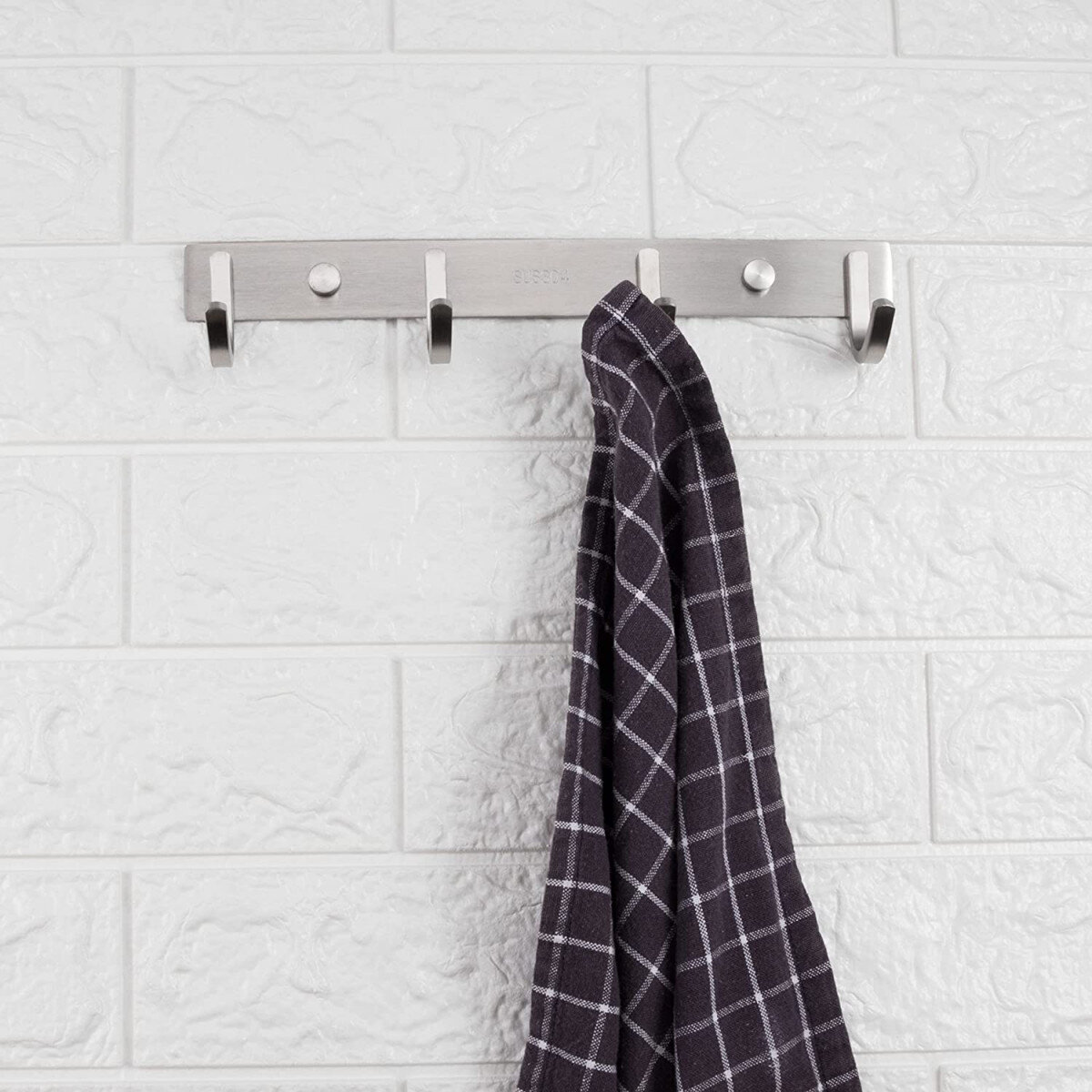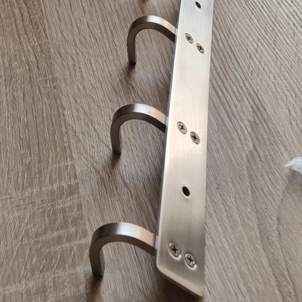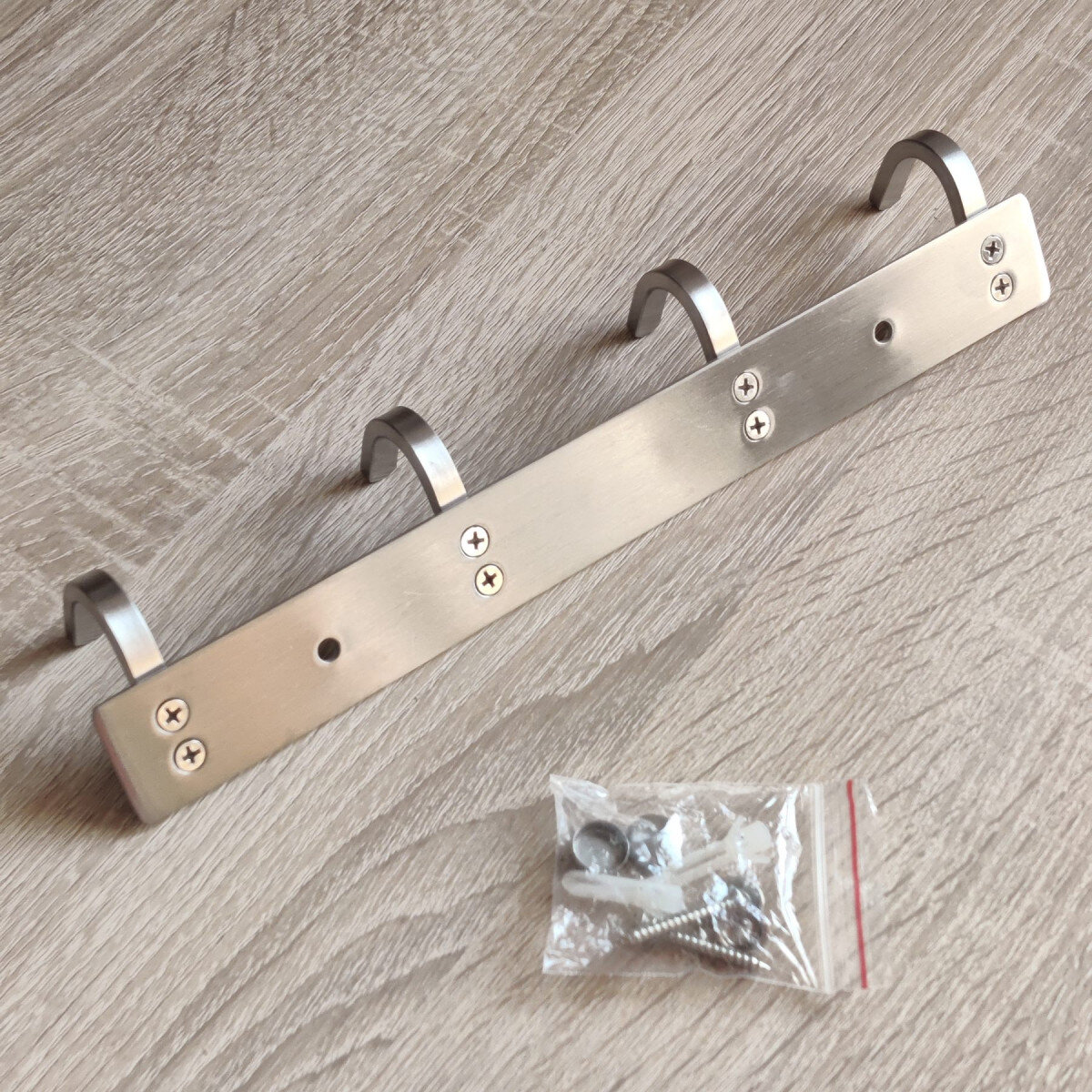 Вішалка із нержавіючої сталі. Виготовлена з товстого матеріалу, не гнеться. Матова поверхня. Кріпиться шурупами.