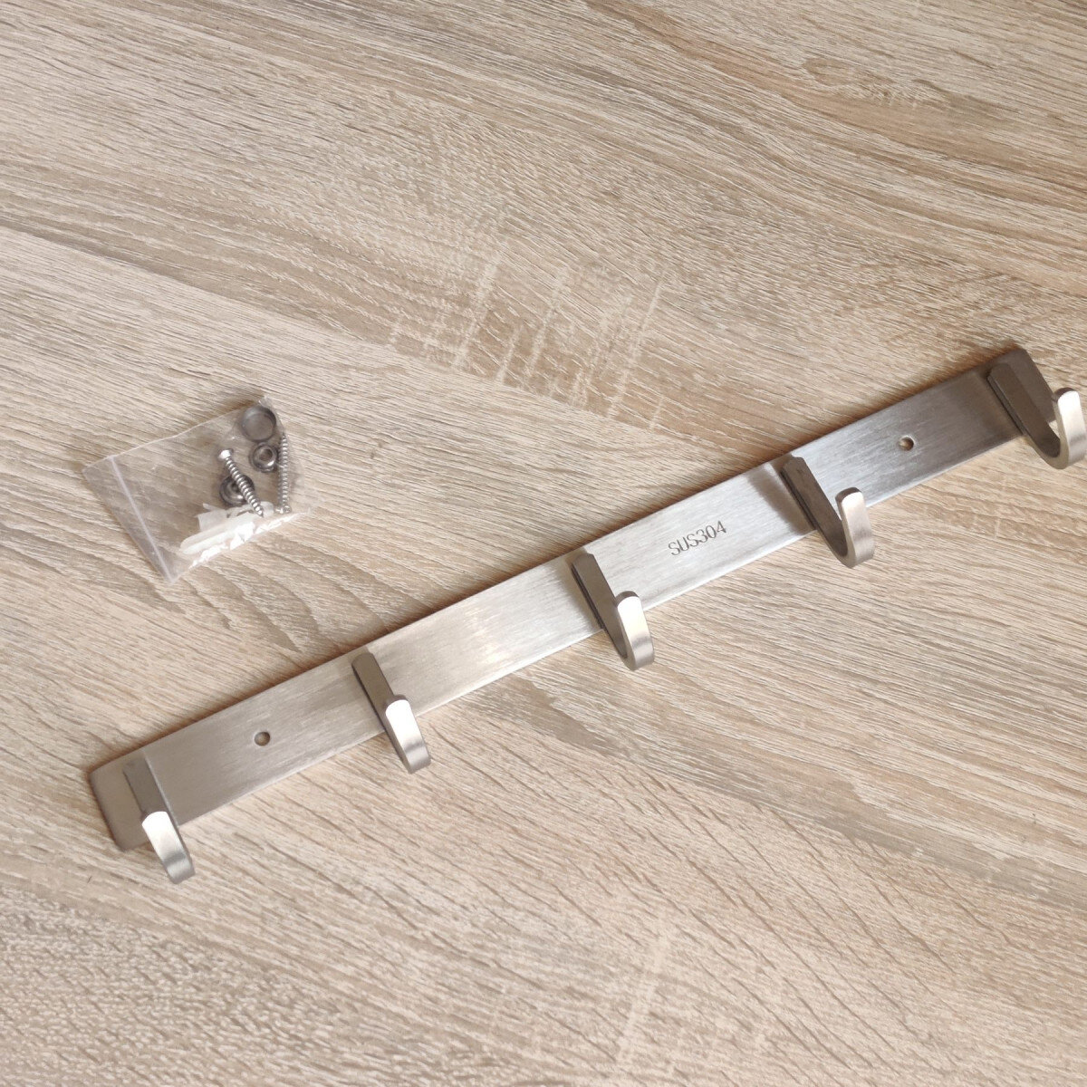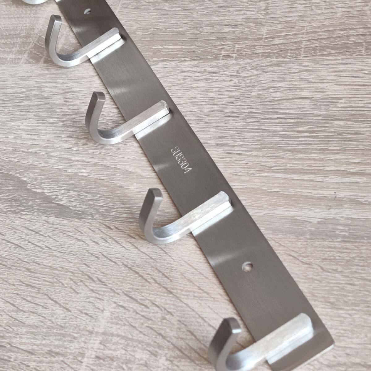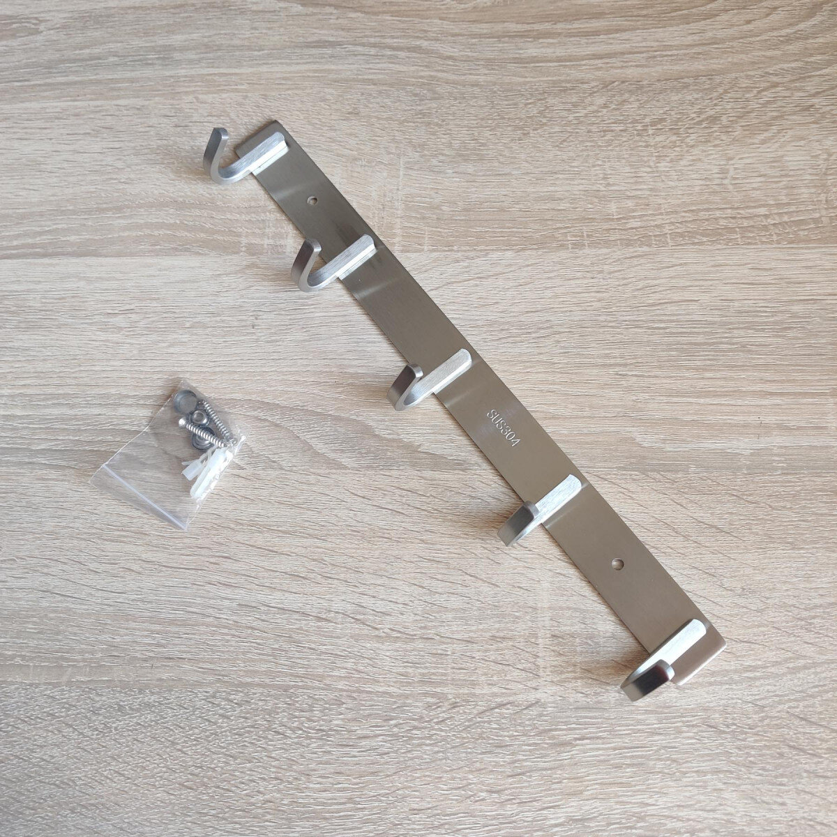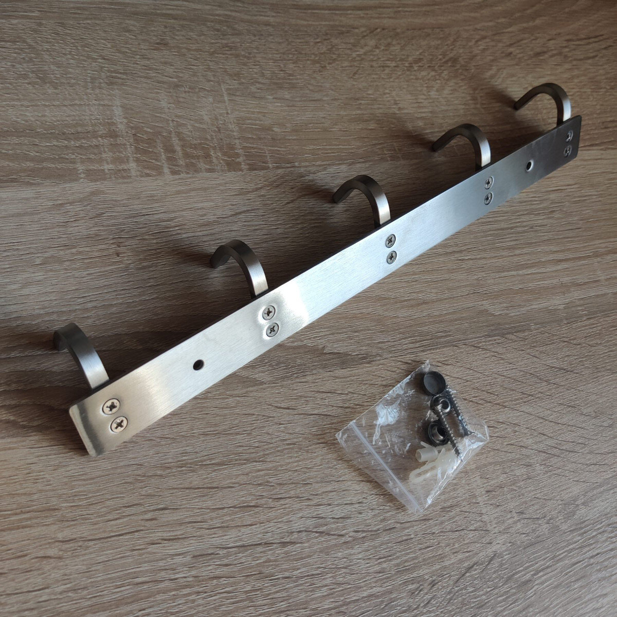 Вішалка із нержавіючої сталі. Виготовлена з товстого матеріалу, не гнеться. Матова поверхня. Кріпиться шурупами.