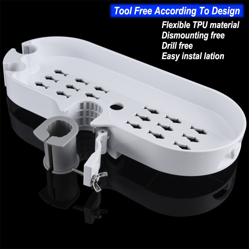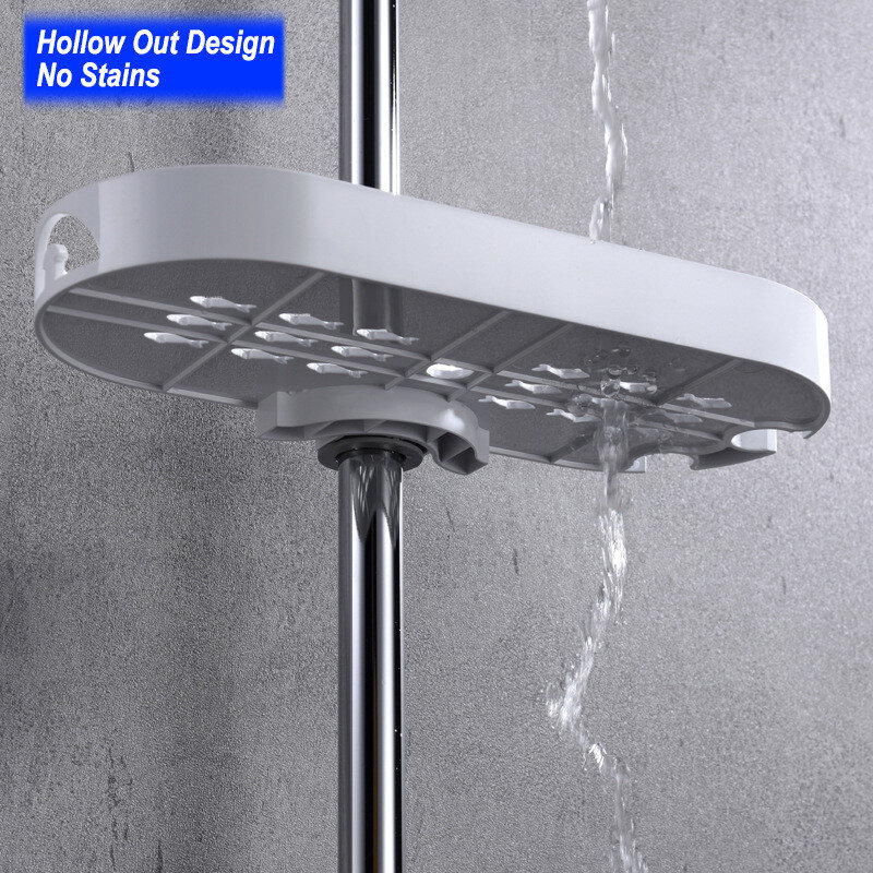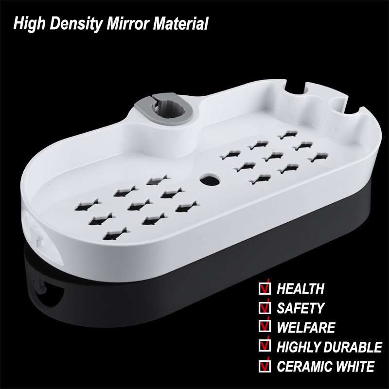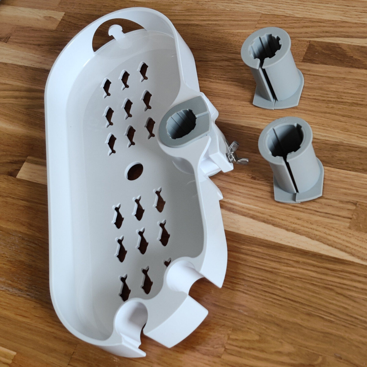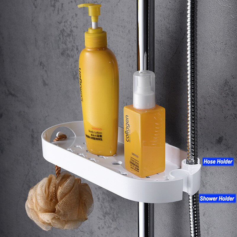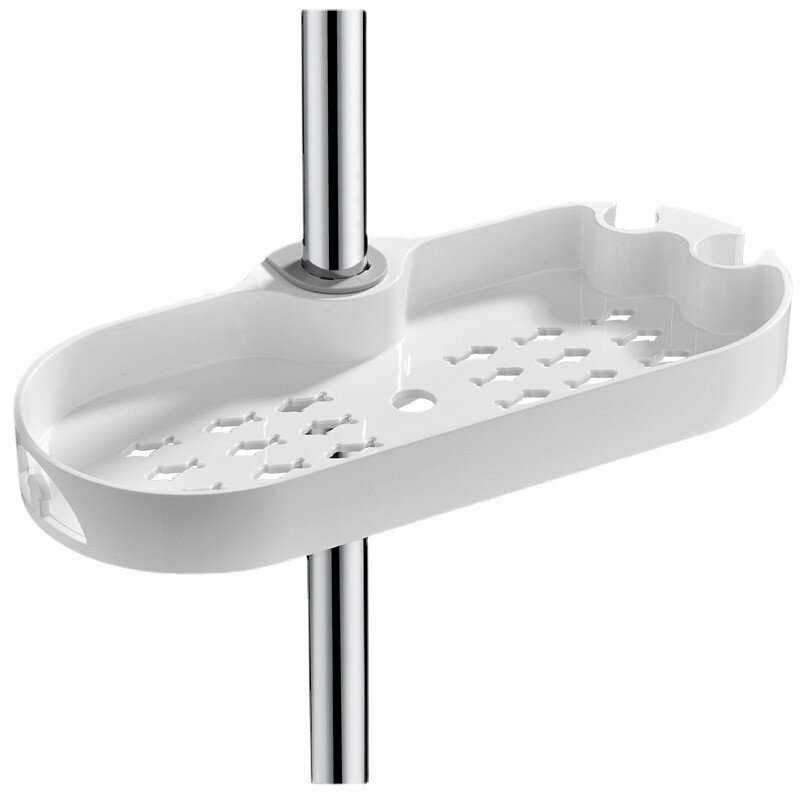 Полиця на душову стійку, виготовлена із пластику. Має гачки та місце для душової лійки.