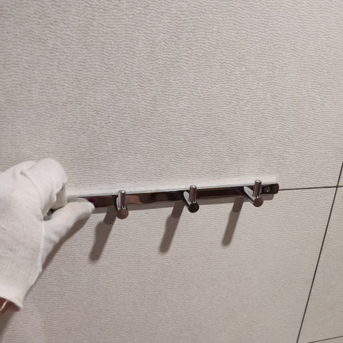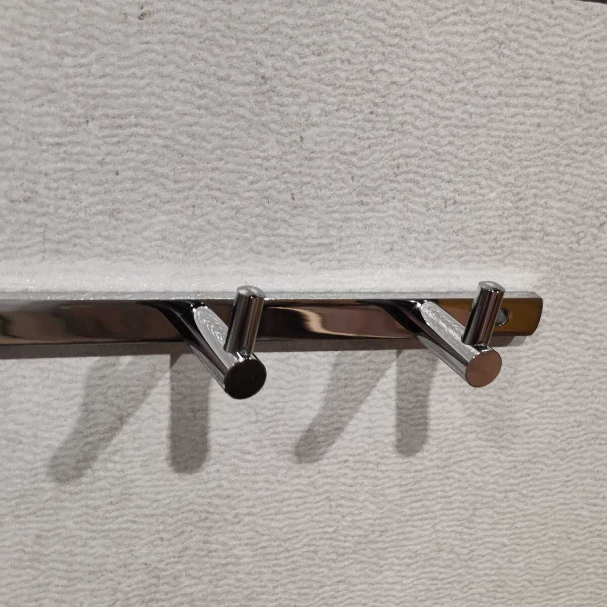 Вішалка із латуні. Виготовлена з товстого матеріалу, не гнеться. Поверхня хромована. Кріпиться шурупами.