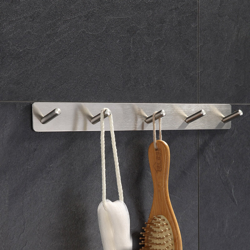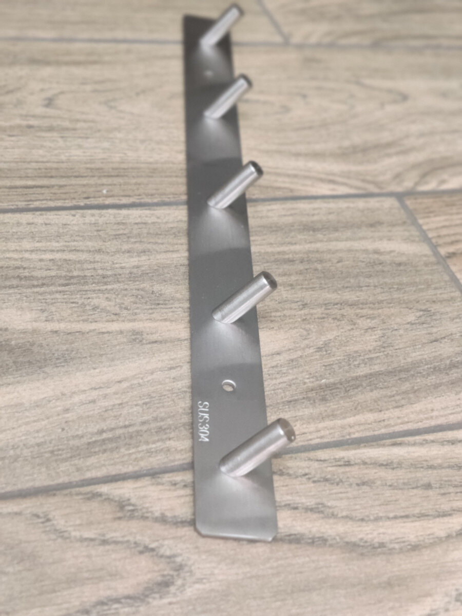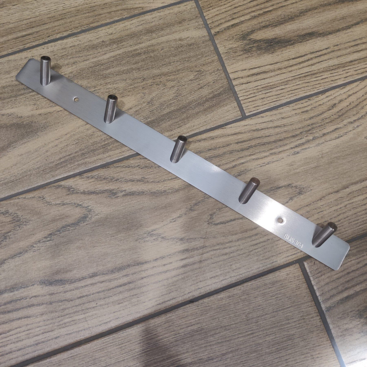 Вішалка із нержавіючої сталі на 5 гачків. Виготовлена з товстого матеріалу, не гнеться. Матова поверхня. Кріпиться шурупами.