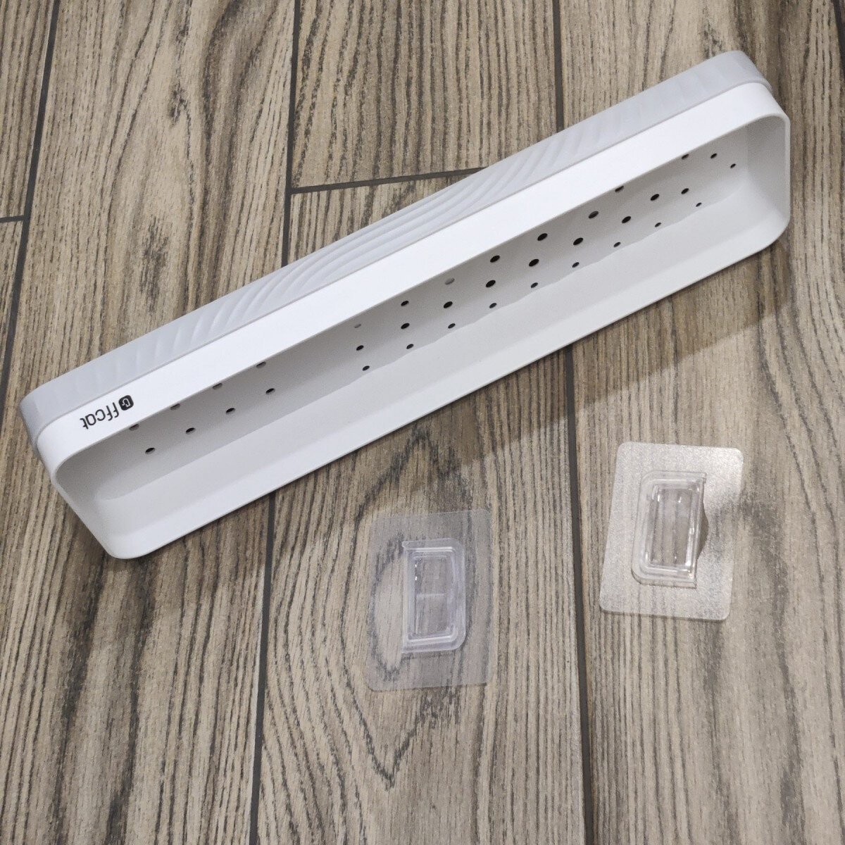 Полиця для ванної виготовлена ​​із пластику. Хороша якість, простий монтаж за допомогою клейких пластин.