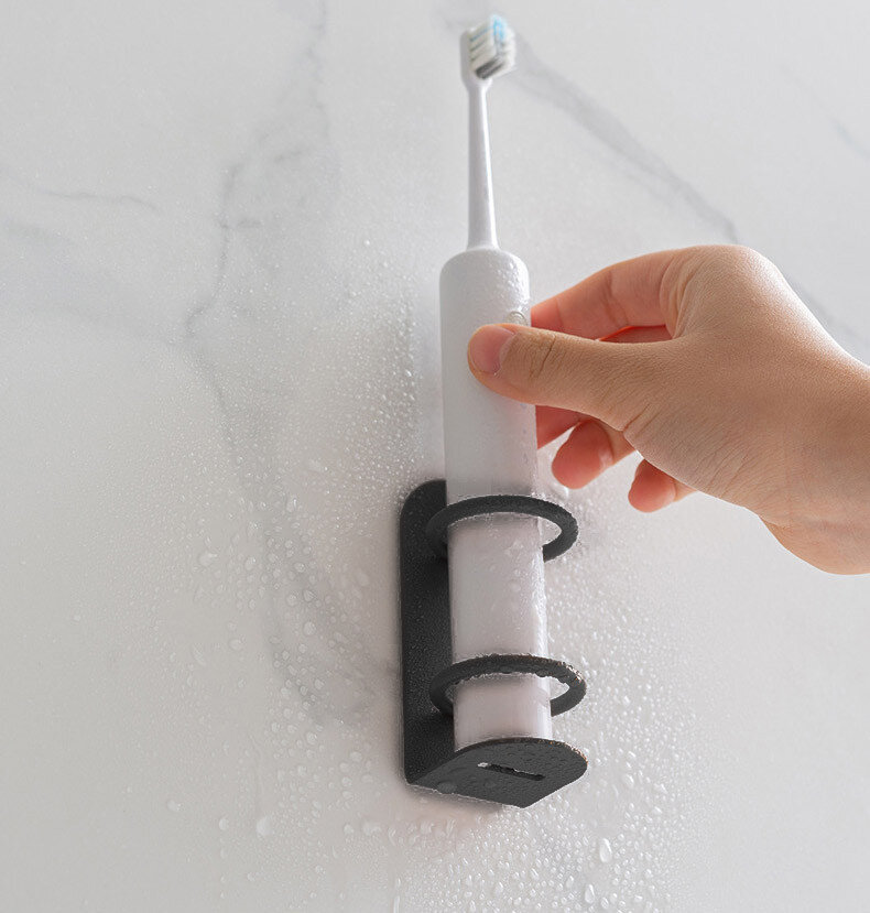 Тримач для електричної зубної щітки клеїться на стіну за допомогою скотчу (у комплекті). Підходить для звичайних та електричних зубних щіток.
