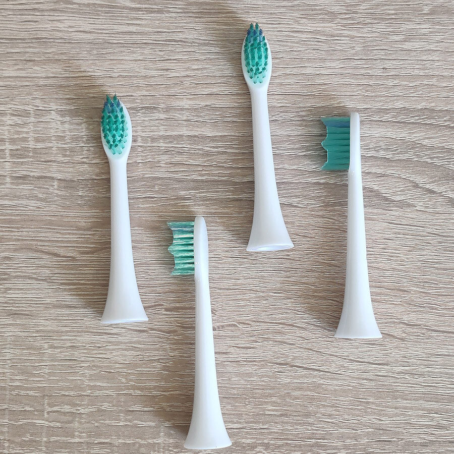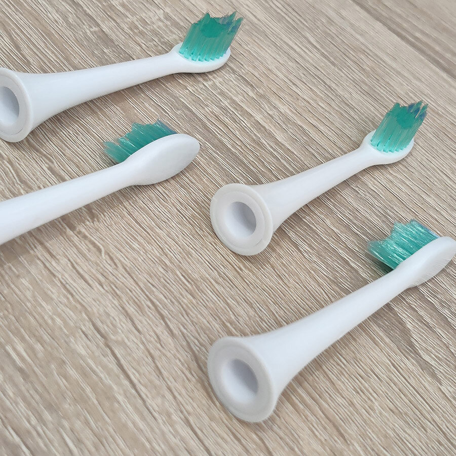 Насадки щітки розроблені таким чином, щоб забезпечити комфортне чищення та сприяти покращенню здоров'я порожнини рота. Підрізані щетинки забезпечують м'який вплив на ясна, забезпечуючи ретельне чищення зубів.
