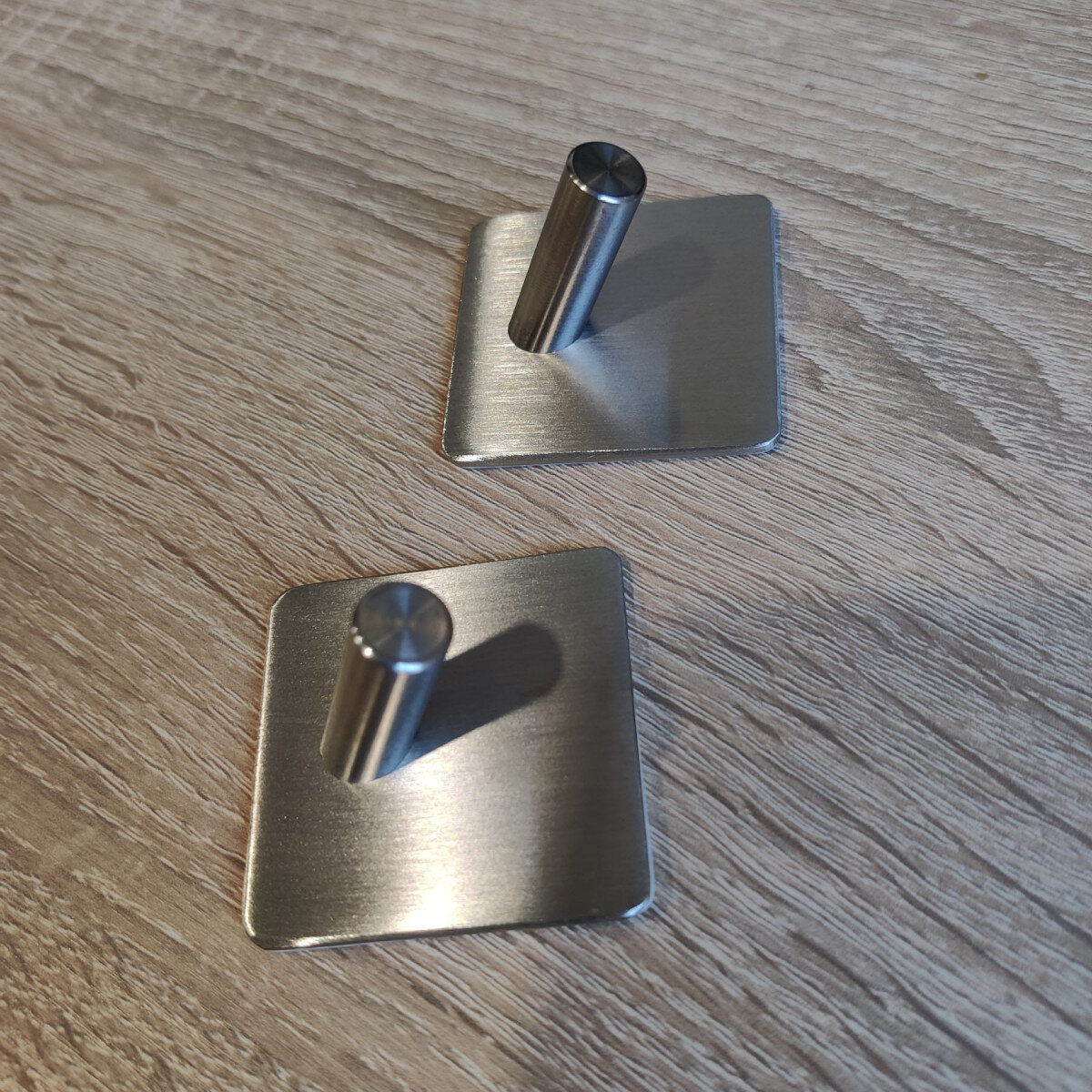Самоклеючі косі гачки виготовлені з нержавіючої сталі. Витримує навантаження до 3 кг. При монтажі на клей (у комплекті не йде) до 10 кг. Найкращий варіант для ванної.