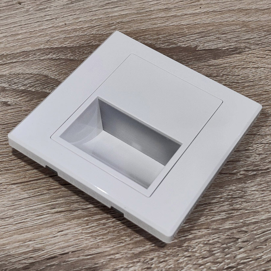 Светильник для ночной подсветки мощностью 1 Вт (15 Lux), температура свечения - 3000К. Удобный для подсветки лестниц, ванных туалетов или жилых комнат.