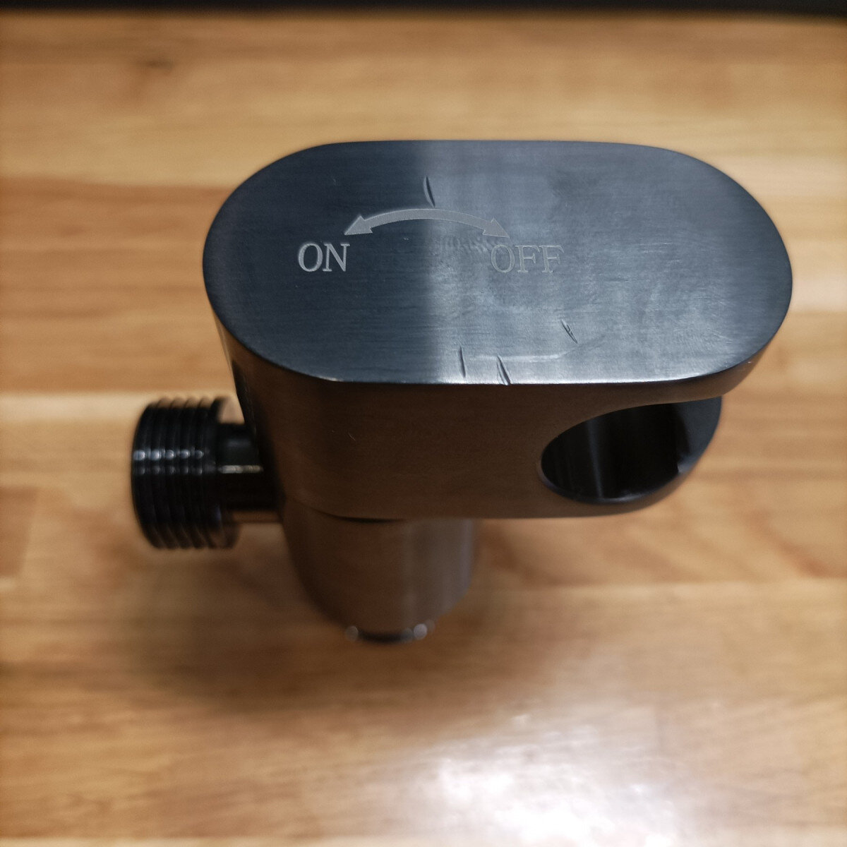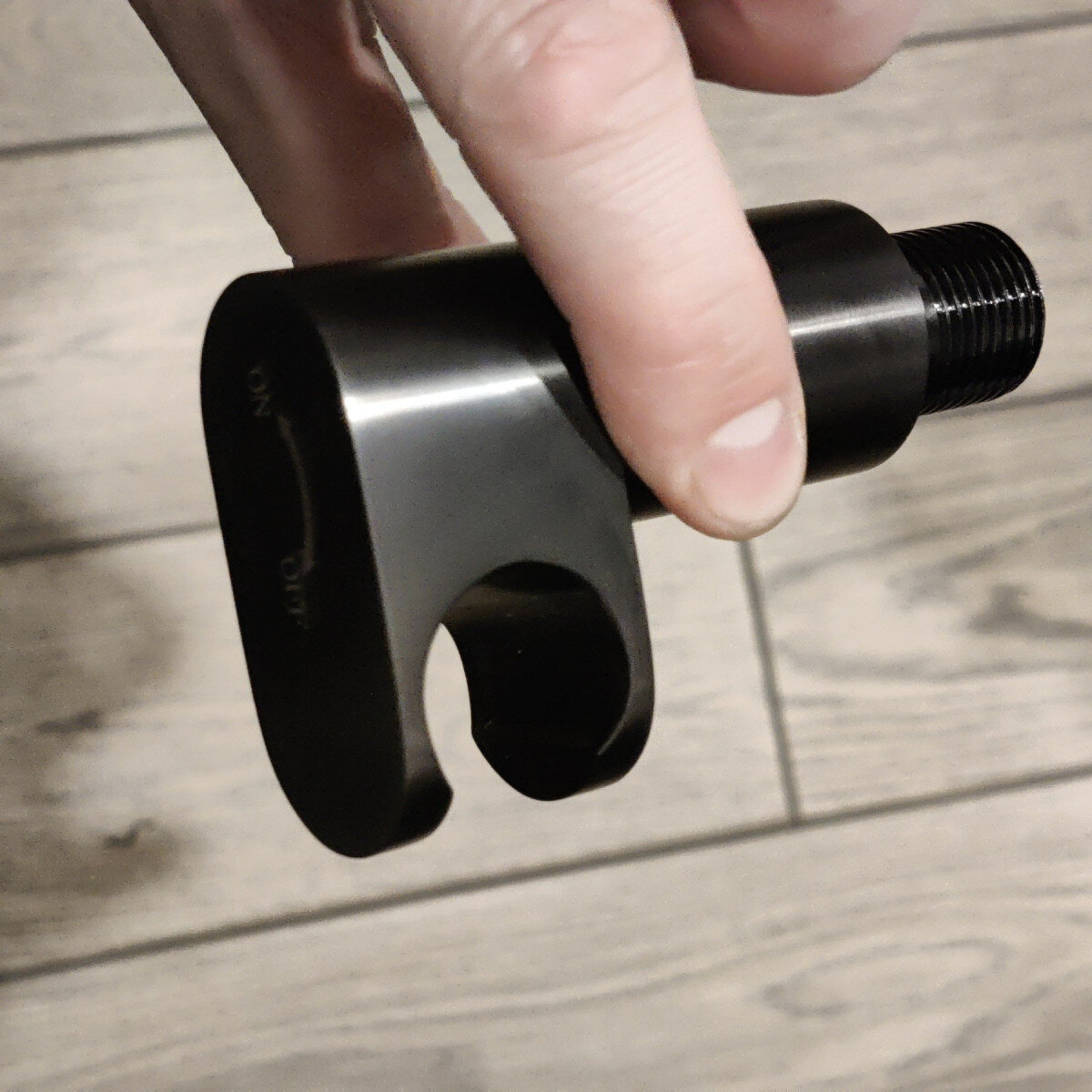 Как это работает? Кран открытия содержит в себе крепеж лейки, вы снимаете лейку и открывает кран. А что-бы повесить лейку назад нужно закрыть кран, иначе просто не выйдет.