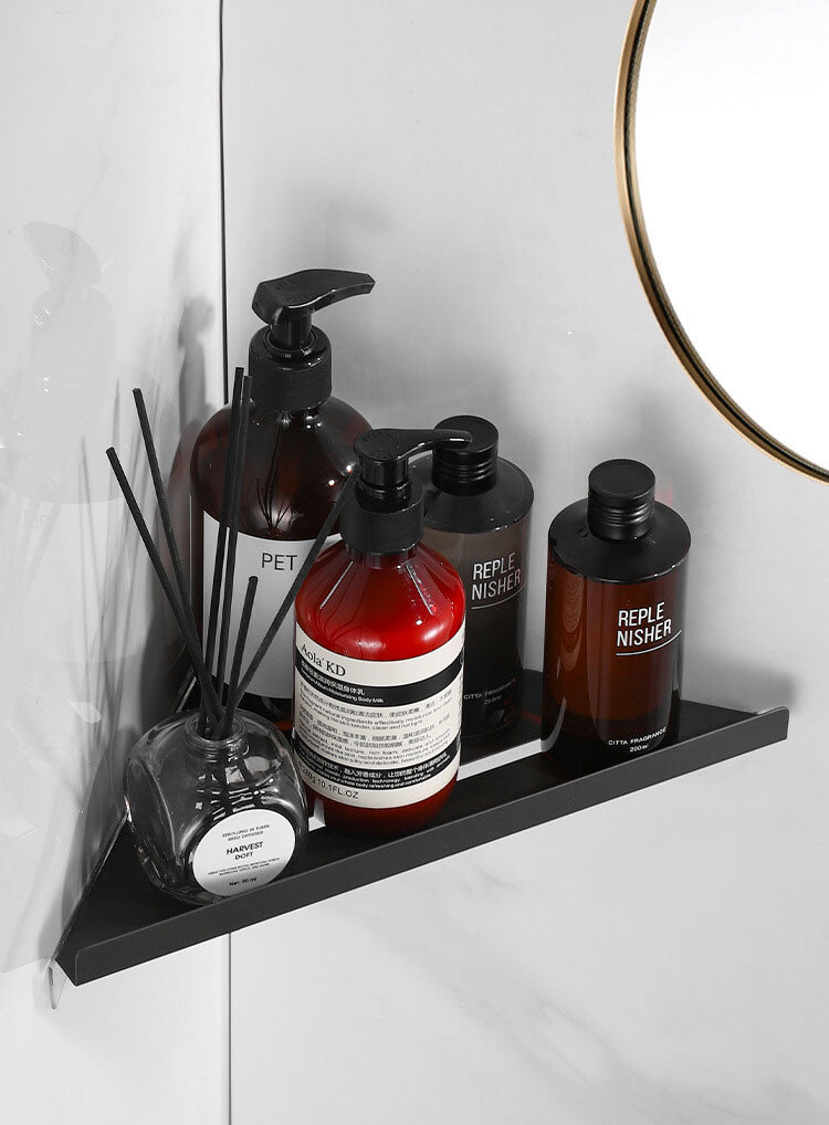 Полиця має сучасний дизайн, що гармонійно поєднується з більшістю дизайнерських рішень при облаштуванні ванної кімнати.